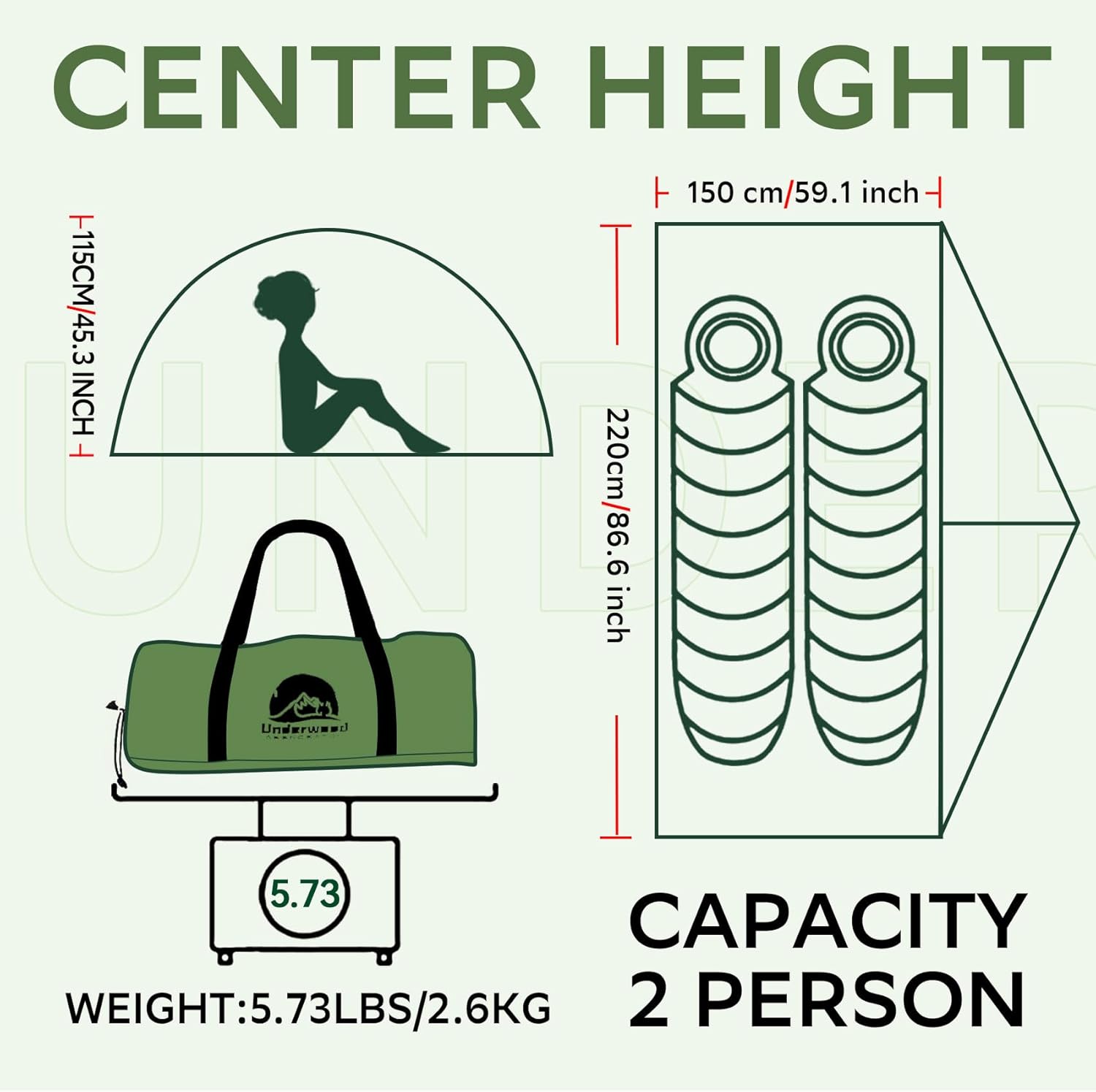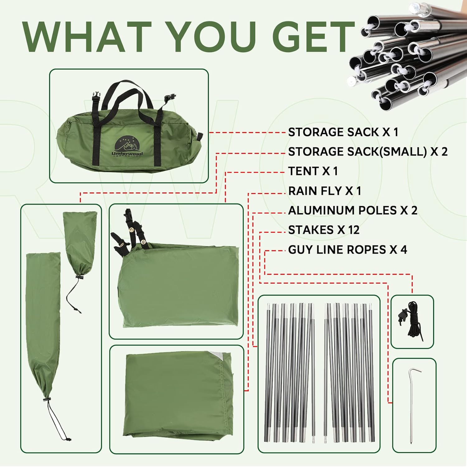 UPGRADED MATERIALS: The backpack tent is designed with premium materials to be used in all weathers of the year. Includes sturdy aircraft grade aluminum poles and full cover rain fly for winter temperatures. The aluminum poles of the waterproof tent are light and tough. The rain fly design and PU5000mm coating of the cold weather tent make sure the interior is dry and clean. All these make the small camping tent windproof and waterproof