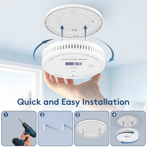 10-Year Battery Smoke and Carbon Monoxide Detector 2-in-1 with Digital Display, 85dB Visual & Audible Alarm, Easy Setup for Living Room,Camper,RV, Brings Peace of Mind