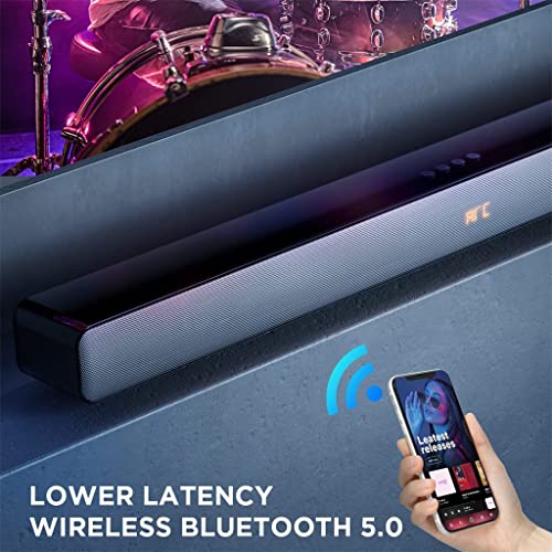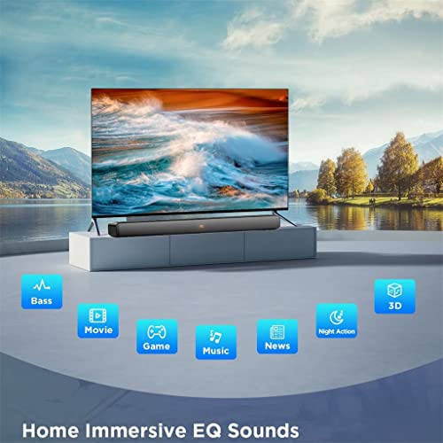 With 4 full-range and 2 tweeter drivers, 6 speakers covering mid-range, treble frequency well, clearly restore sounds in different height and depth, providing a more realistic multi-dimensional audio experience.1.5L -large speaker cavity and over 2.6inch tall, the soundbar creates rich, powerful bass, the seperate left and right two0channel sound systems can achieve obvious sound image positioning and sound field effect.Get Deep, booming bass w