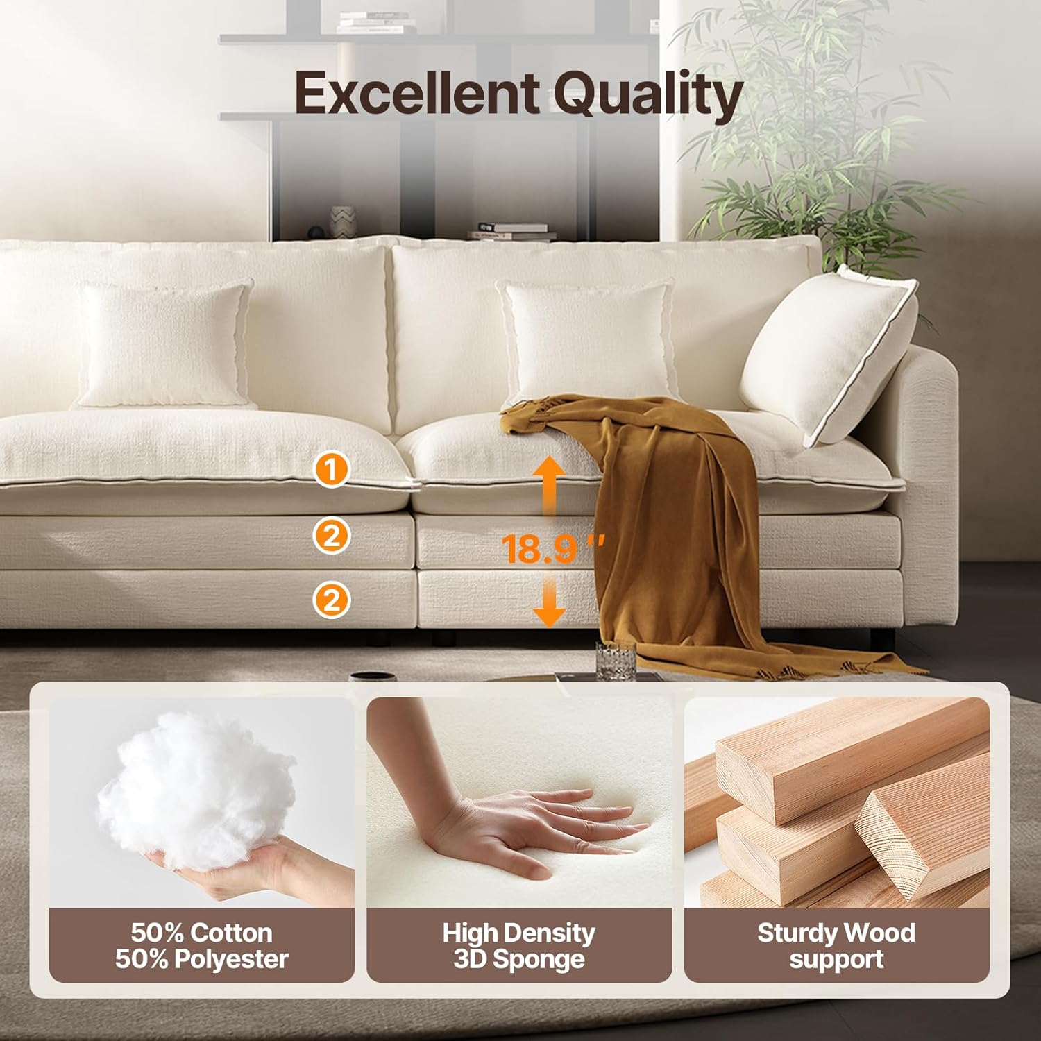Comfy & Soft Cloud Couch: Experience cloud-like comfort with our double-layer seat cushion. The combination of high-density cotton, sponge, andpocket springs provides superior softness and support, making every seatvery soft. This sofa is designed to offer ultimate relaxation, whether you’relounging alone or hosting guests