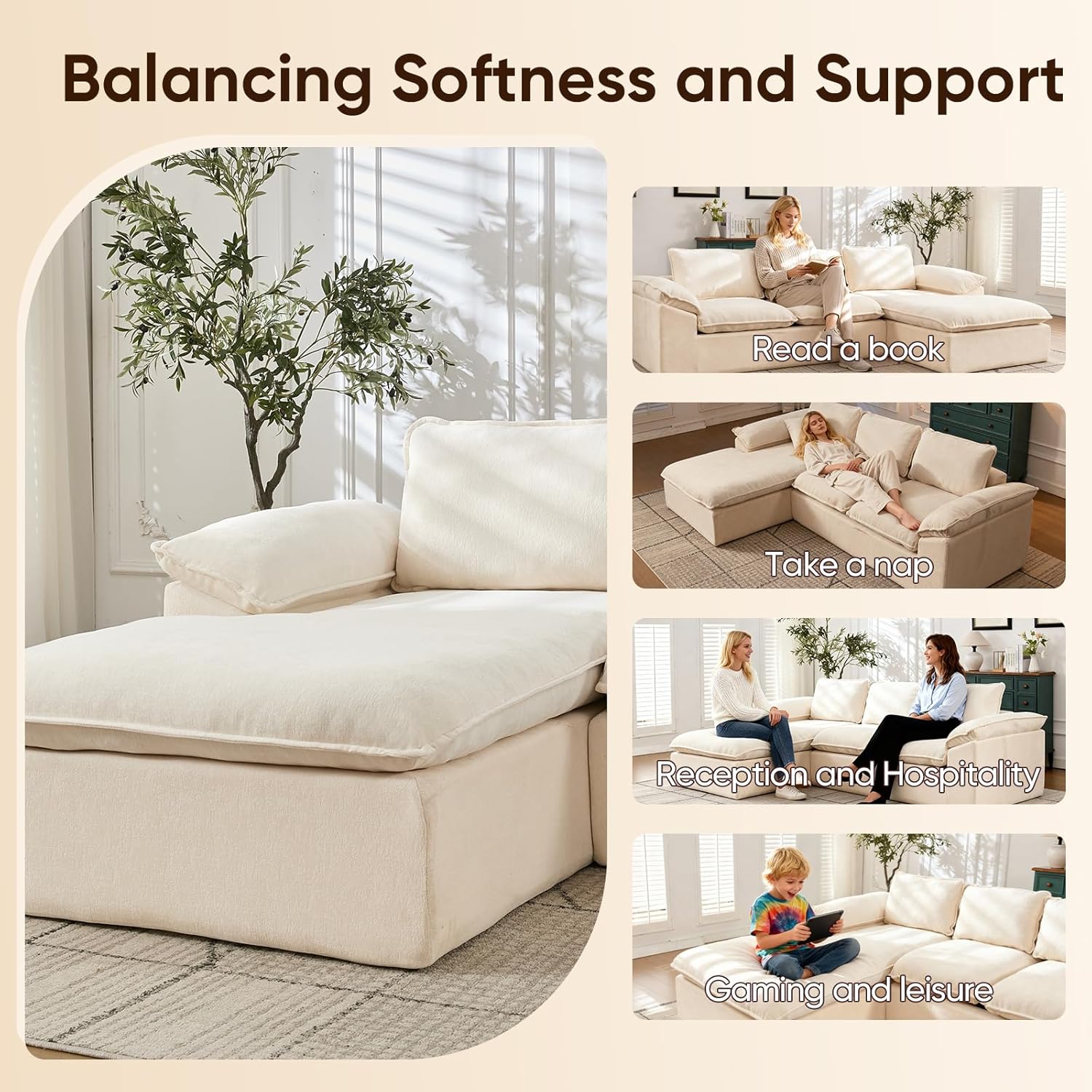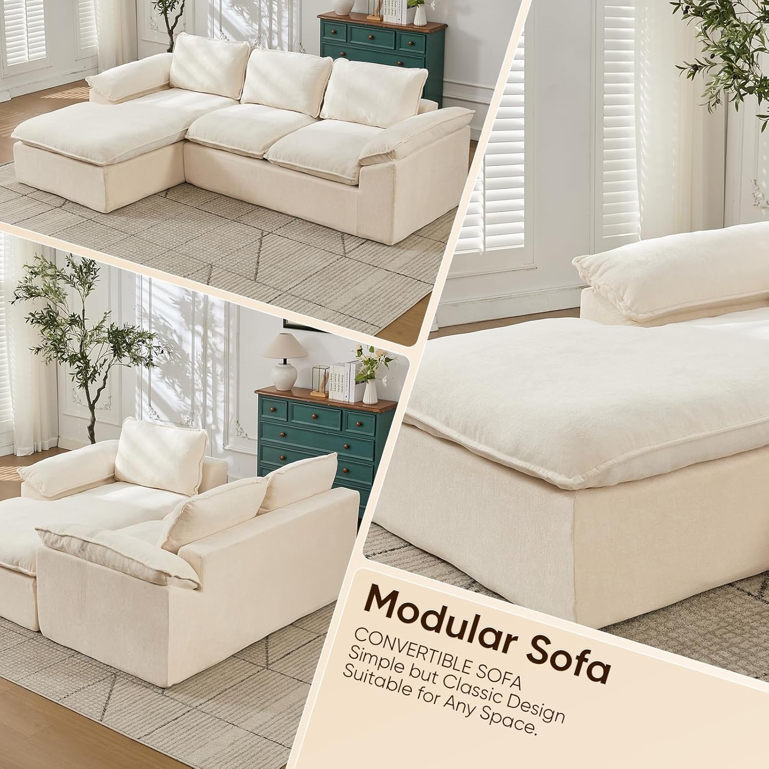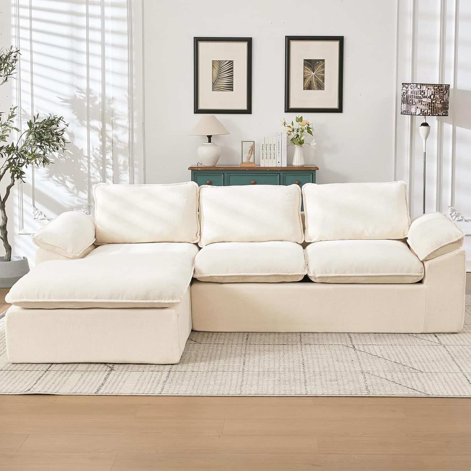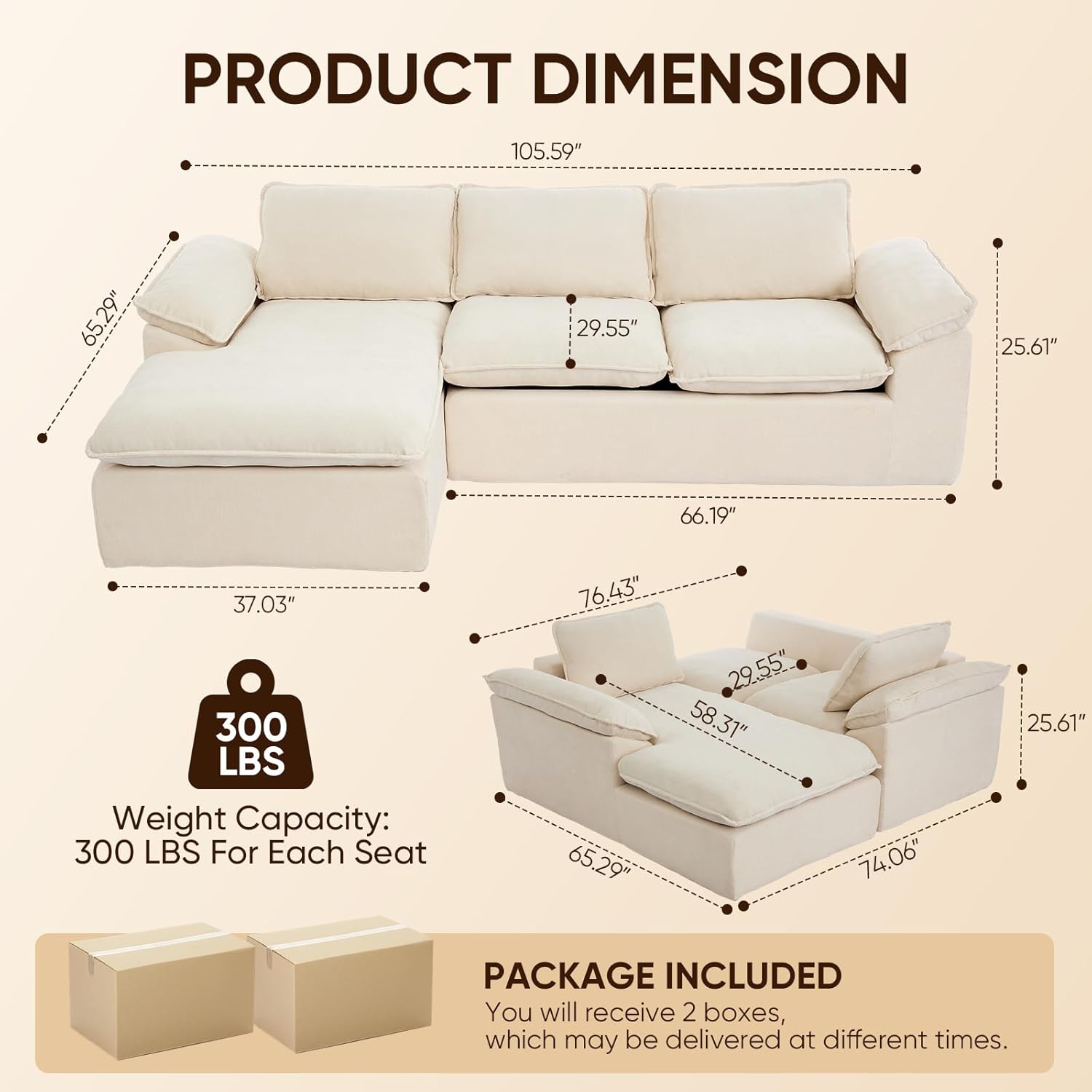 105.6”L Shape Modular Sectional Couch for Living Room, Modern Cloud Sectional 3 Seat Sofa with Oversized Chaise, Woven Texture Upholstery Boneless Couch (Beige, Left Facing Chaise)