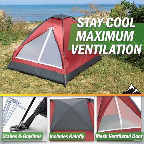 118 Person Camping Tent with Rain Fly and Carrying Bag – Lightweight Outdoor Pop Up Tents for Camping Essentials, Music Festivals, Backpacking, Hiking, or Beach Shelter by Wakeman Outdoors