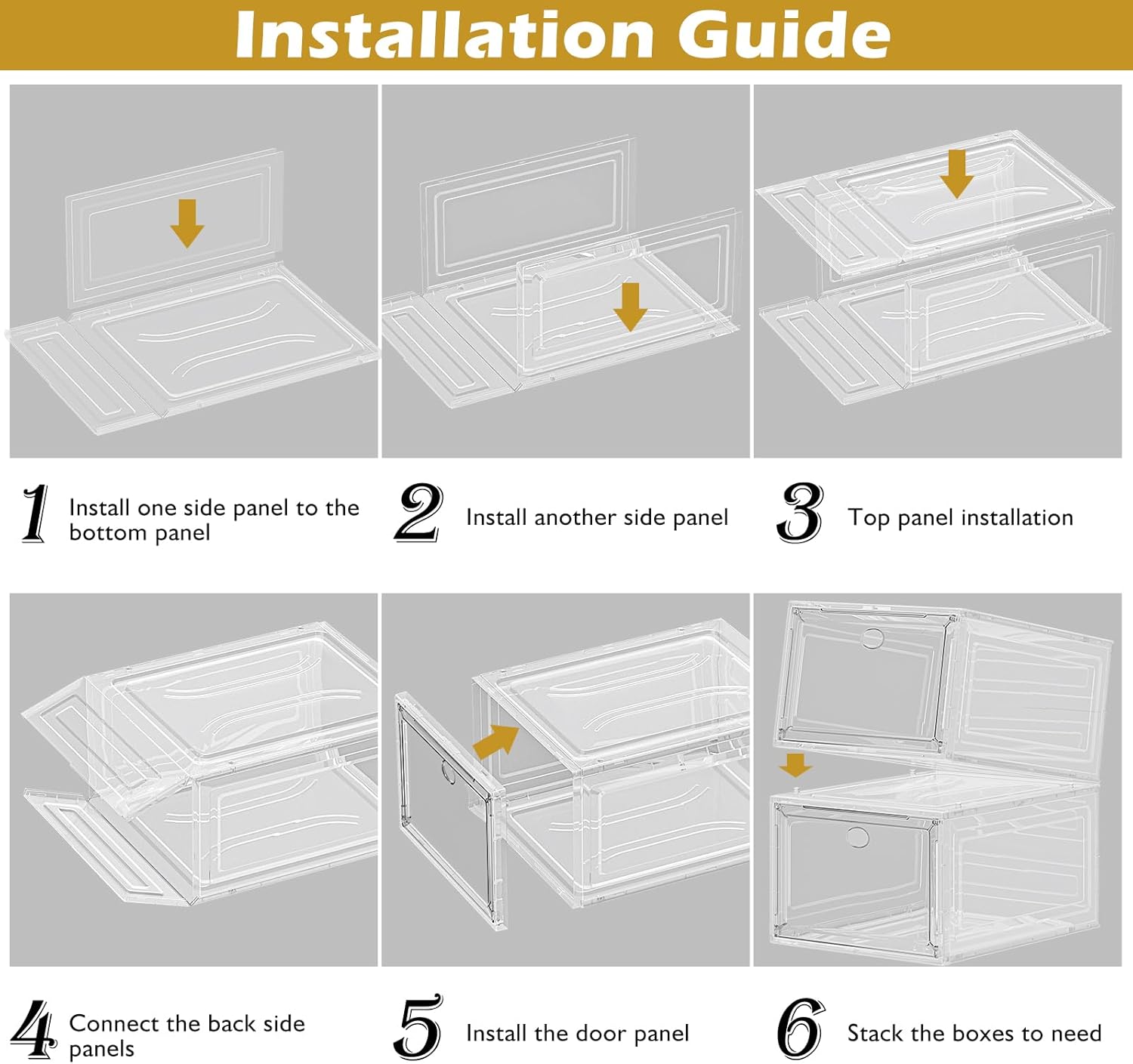 【Easy Assembly】Hassle-Free Setup & Satisfaction Guaranteed we shoe boxes are designed for quick and hassle-free assembly. If you have any questions or concerns, We customer support team is always ready to assist you. Enjoy a clutter-free closet with we reliable shoe storage solution!