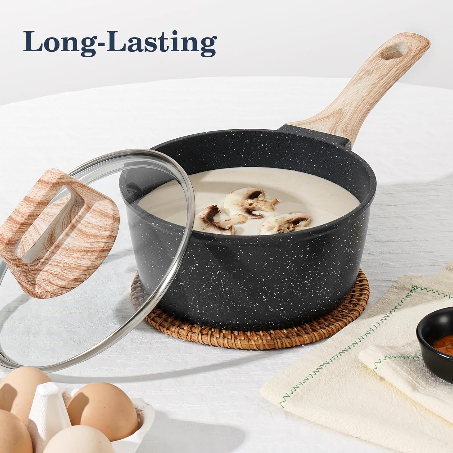 All-in-One Cookware Set – From frying and boiling to simmering and sautéing, this nonstick pots set includes frying pan, saute pan, casserole, milk pots and pan protectors. Simplify your kitchen with this complete pots and pans set—thoughtfully curated to cover all your daily cooking needs.