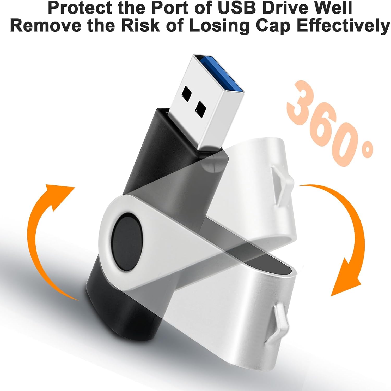 Durable & Portable: Pocket-sized USB stick(2.27″ x 0.75″) travels effortlessly with you. USB thumb drive featuring a 360-degree metal swivel cap that safeguards the USB port, the USB flash drives rugged aluminum casing withstands daily wear & tear.The rotating cap of the flashdrive features a keyhole at its end, allowing you to easily attach it to a key ring or backpack, preventing loss and enhancing portability.