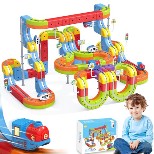 141 PCS klick Rail Electric Train Set with Racer 3D Train, Cube Track & Anti-Gravity Car, STEM Educational Toy for Kids (Ages 3-8), Flexible Race Track for Boys & Girls