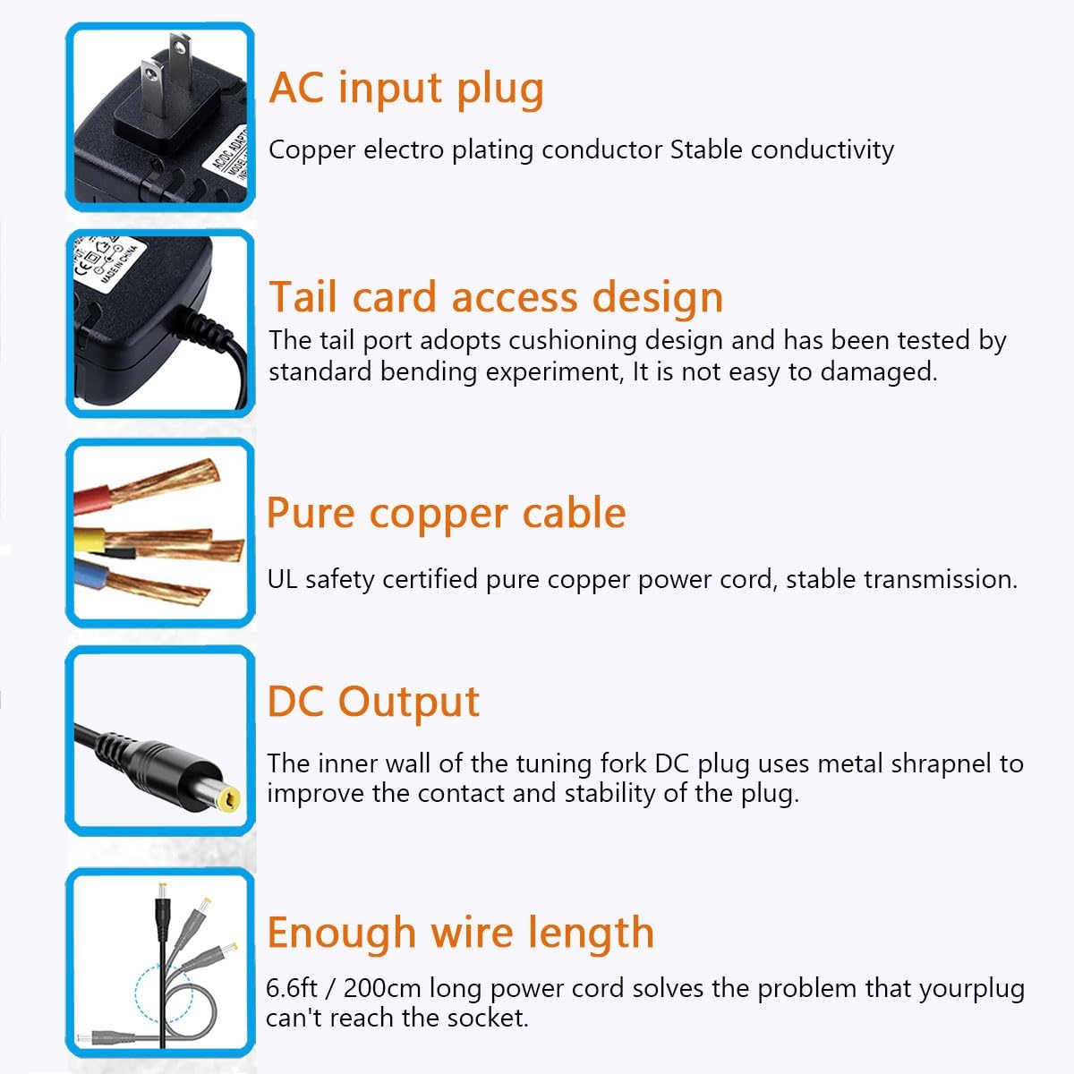 Compatible with: Echo Dot 3rd Gen / with Clock / Kids Edition, Echo Dot 4th Gen / with Clock / Kids Edition, Echo Dot 5th Gen / with Clock / Kids Edition, Echo Show 5 (1st Gen 2019 release), Echo Show 5 (2nd Gen 2021 release), Echo Pop, Echo Pop Kids Edition, Echo Spot (2017, 2024 release), Fire TV Cube (3rd Gen) Power Cord Long: 6.6 feet / 200cm Safe & Reliable: With OverCurrent/OverCharge/Temperature/ShortCircuit/OverVoltage Protection, CE FCC RoHS electrical safety standards, VI energy efficiency, better protect your alexa echo device Service: If you have any questions or suggestions about the product, please feel free to contact our, 7 x 24 hours service