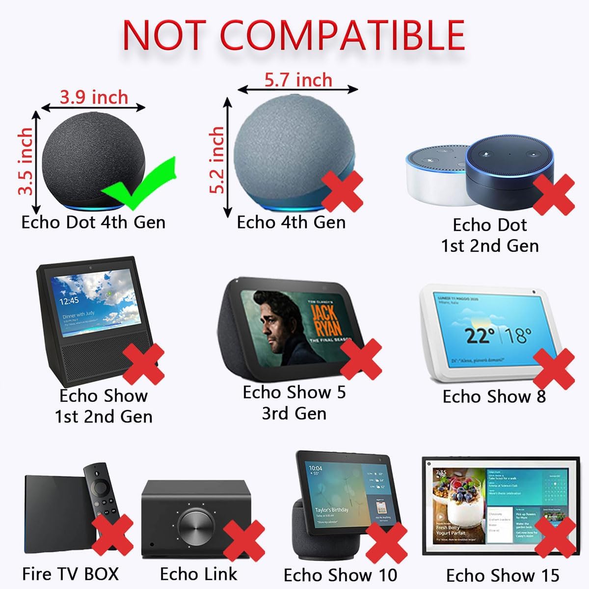 for Alexa Echo Dot / Spot / Pop (newest model)Echo Dot 3rd Generation (2018 release)Echo Dot 4th Generation (2020 release)Echo Dot 5th Generation (2022 release)Echo Dot 3rd 4th 5th Gen Kids Edition with ClockEcho Show 5 (1st Gen, 2019 release)Echo Show 5 (2nd Gen, 2021 release)Echo Pop and Kids Edition (2023 release)Echo Spot (2017, 2024 release)Fire TV Cube (3rd Gen)C78MP8 B7W64E B7W644 GP92NA GP92NB ZE39KL H23K37 DN29T RQP2A5 D9N29T and other portable DVD EVD, media player streaming devices