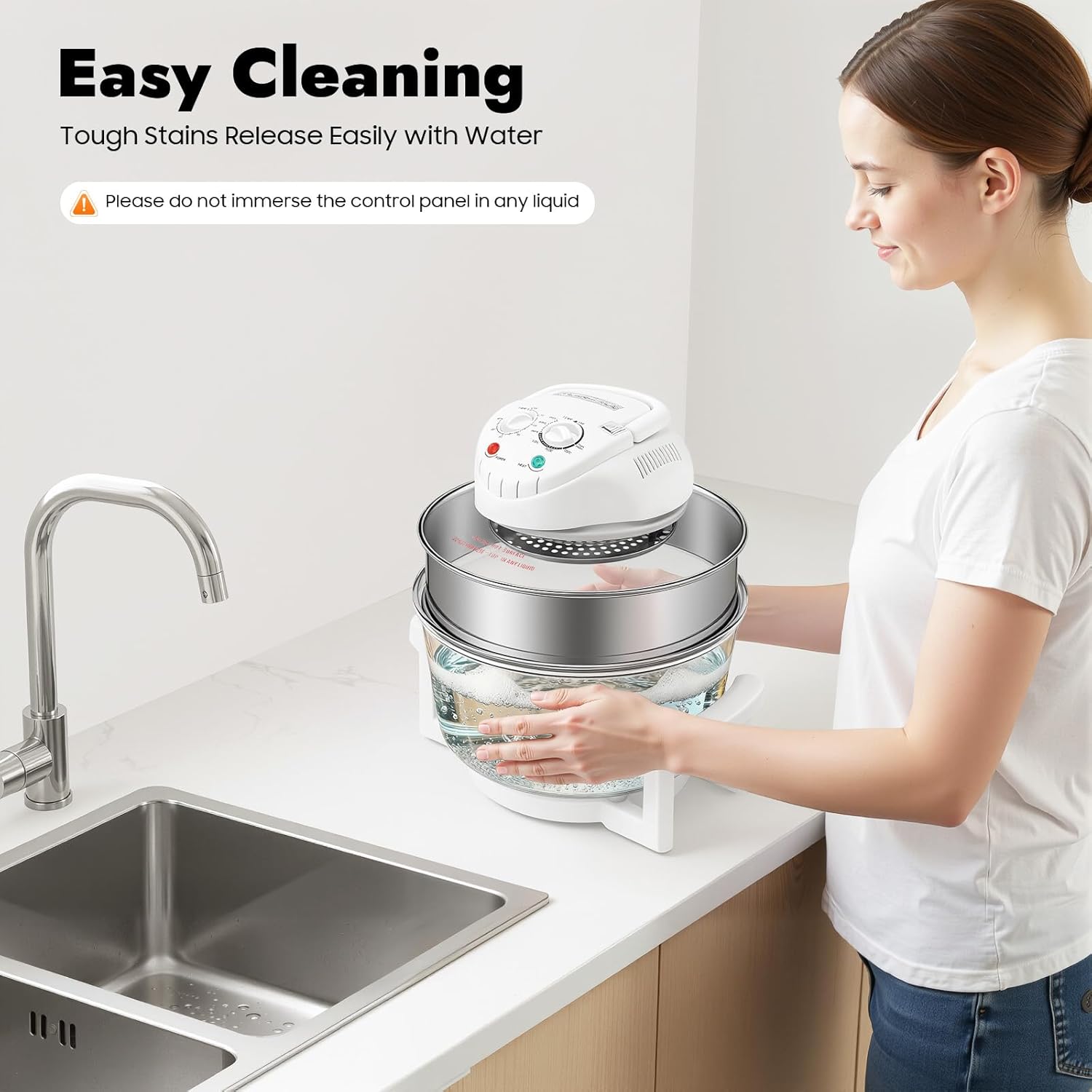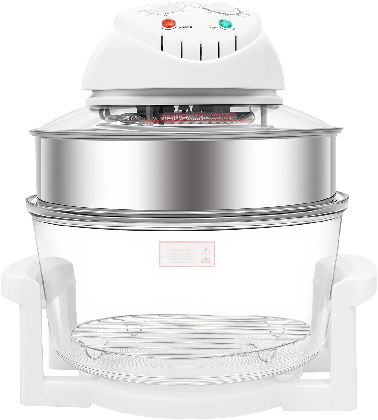 17L/17.96Qt Glass Turbo Air Fryer, 360° Viewable Airy Fryer with Expansion Ring, Large Capacity Oil-Free Cooker with Time & Temp Control, Electric Oven with Grill for Home Kitchens, Family Gatherings