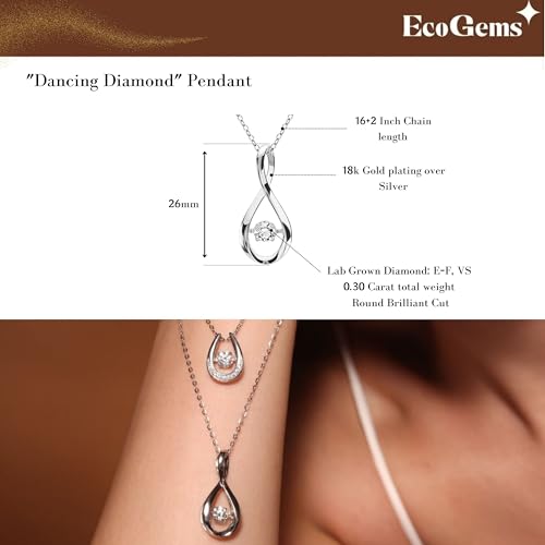 Eco Gems 18K White Gold Plated Silver Necklace in 16/18 inch chain length With 0.30 Cttw Round Brilliant Cut Lab Grown Diamond radiates elegance and luxury. Crafted with precision and care, perfect for your loved one. Our jewelry is lead-free and non-irritating, even for sensitive skin. Retains its color and luster, ensuring long-lasting wear.