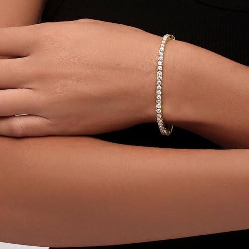 18K Yellow Gold Plated Silver Bracelet With 5.20 Carat Total Weight Moissanite (D Color, Round Brilliant Shape, VVS Clarity) Bracelet For Women, Gift For Her, Jewelry For Women Comes With Gift Box