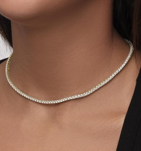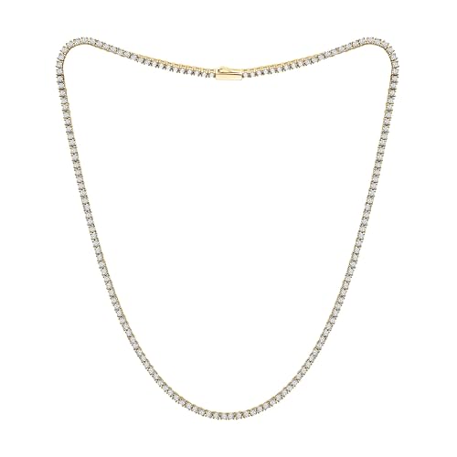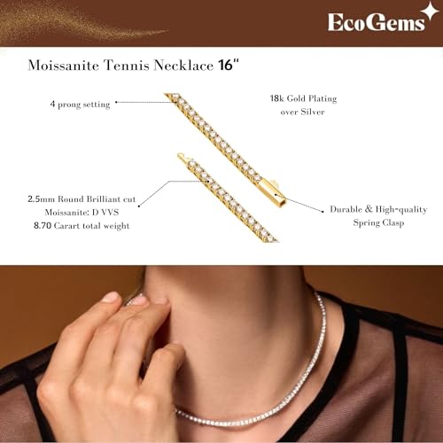 Eco Gems 18K Yellow Gold Plated Silver Necklace in 16″ Length With 8.70 Cttw Round Brilliant Cut Moissanite radiates elegance and luxury. Crafted with precision and care, perfect for your loved one. Our jewelry is lead-free and non-irritating, even for sensitive skin. Retains its color and luster, ensuring long-lasting wear.