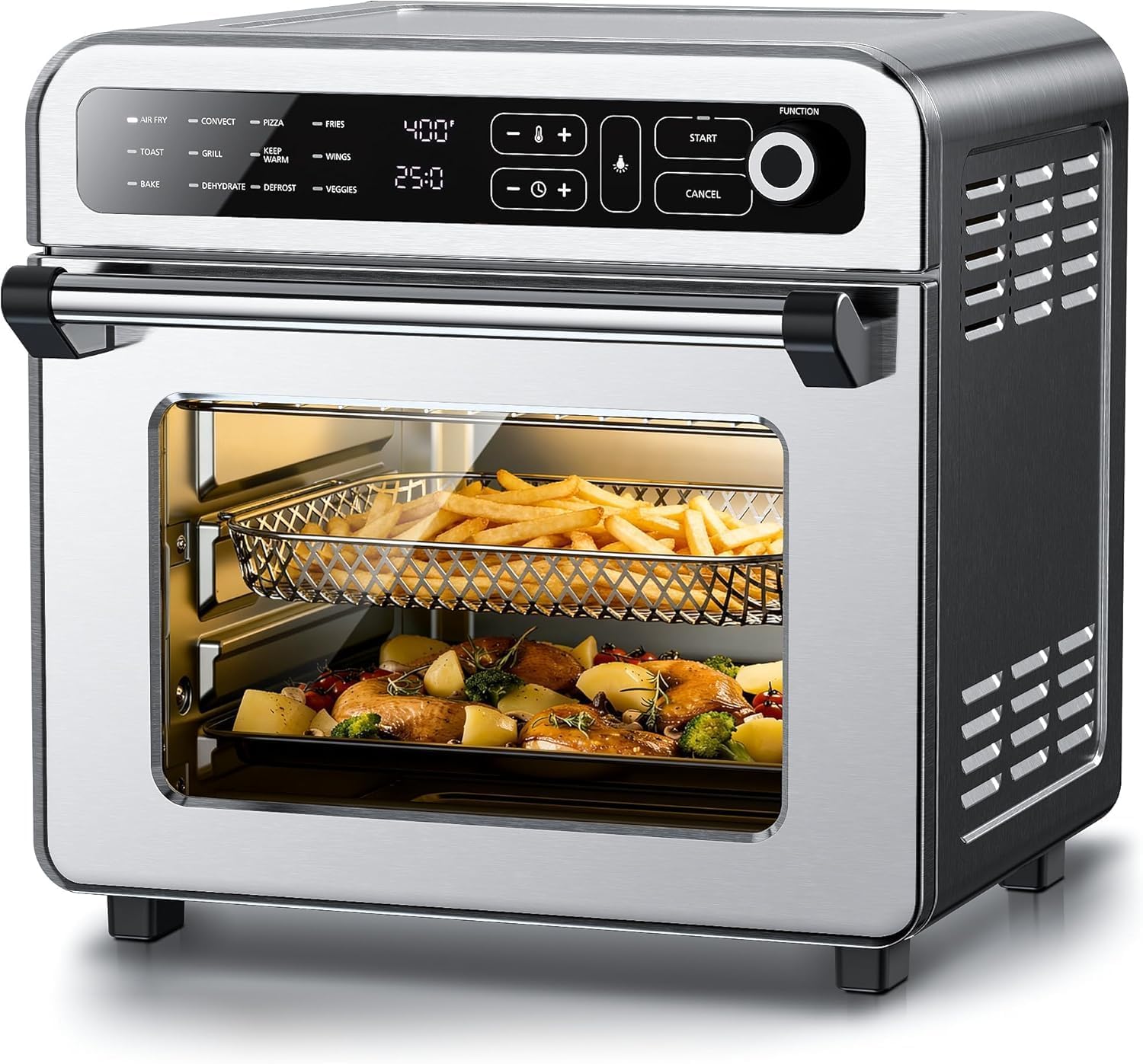 18QT Air Fryer Toaster Oven Combo, 12-in-1 Large Convection Airfryer Oven with 70–450℉ Temperature Control & 60-Minute Timer, Bake, Roast & Broil, Fits 8-10″ Pizza, Stainless Steel (Silver)