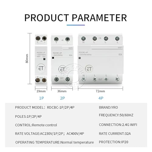 1PCS 1P WiFi Circuit Breaker Smart Timer Switch Relay APP Remote Control Smart Home (Color : 50A, Size : 1P-20)