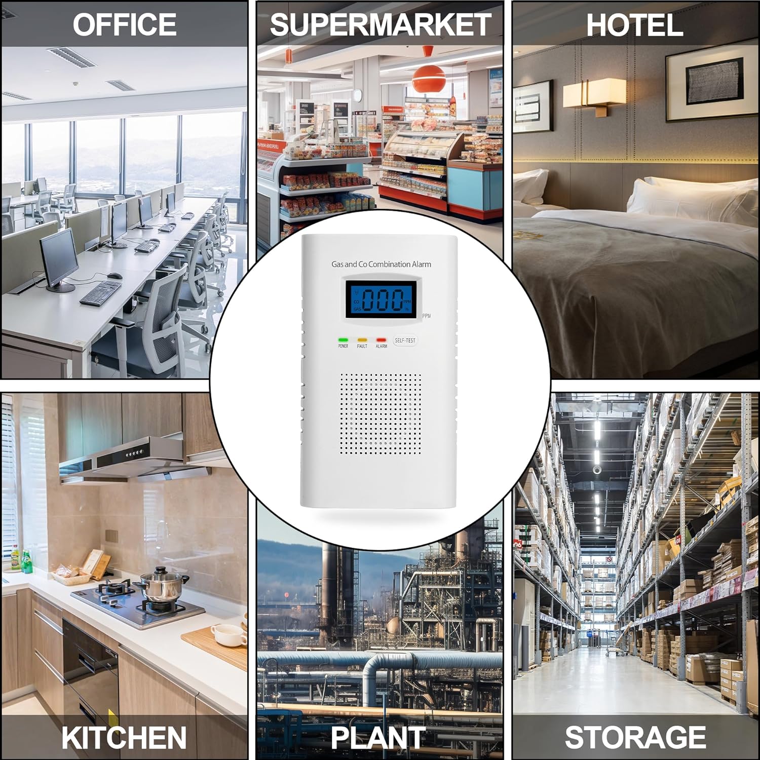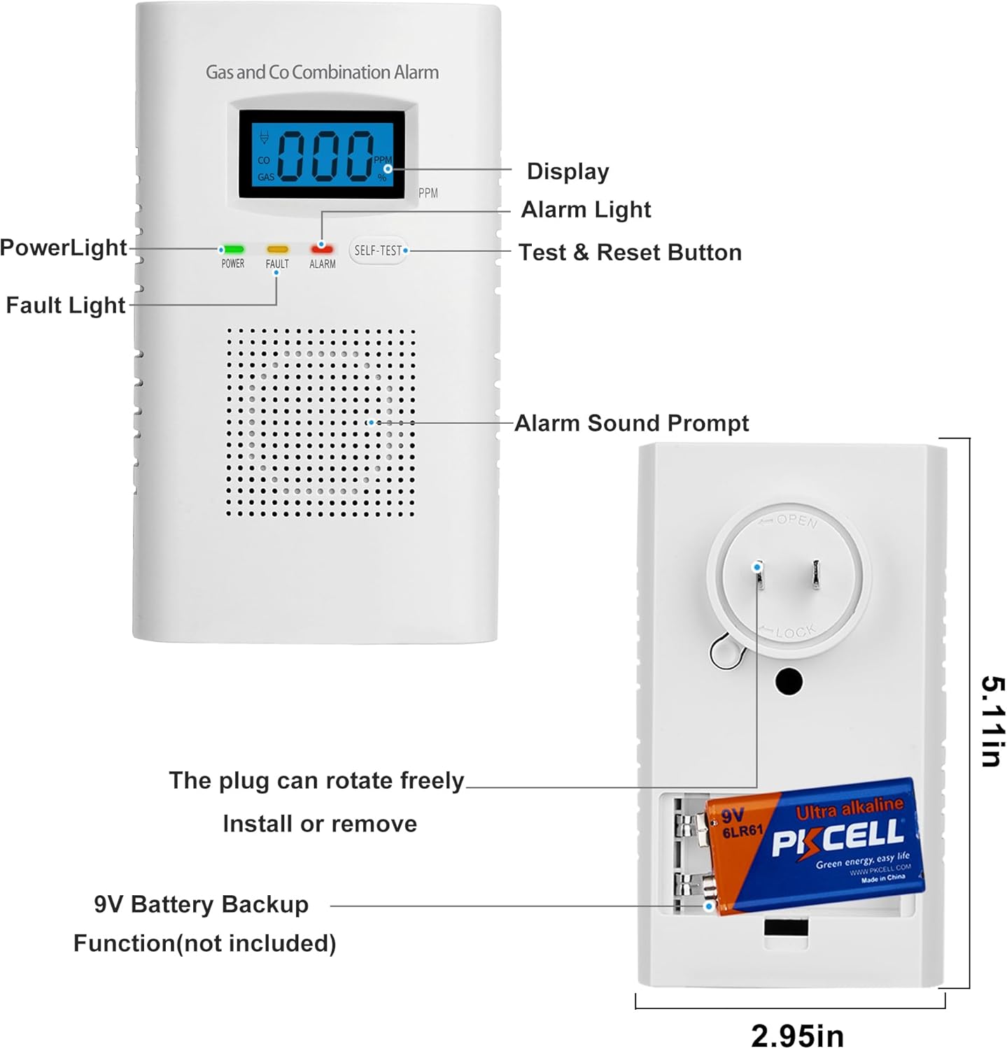 2-in-1 Combination Gas and Carbon Monoxide Detectorplug-and-playDual sensors are used9V battery backup functionDigital display and alarm