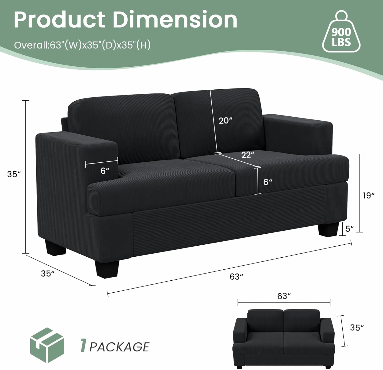 Specification: 2 Pieces Corduroy Couch Set for Living Room, Black Cloud Sofa, Deep Seat Floor Couch for Bedroom, Futon Modern Sofa Sectional Bed, Black Corduroy