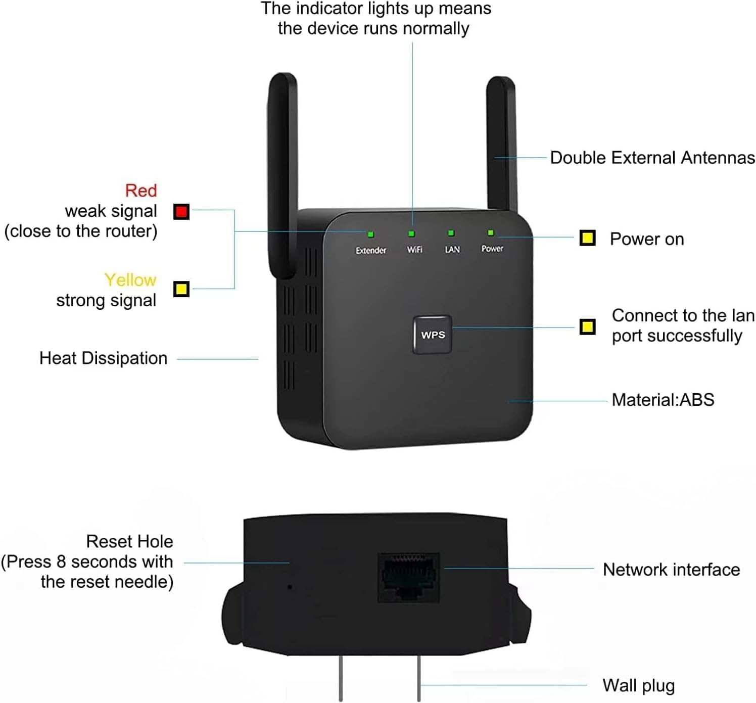 ✅Easy to Setup – Just press the WPS button on the WiFi extender and router, you can extend the wireless coverage within 8s. Or easy set up by smartphone. Smart signal lights help to find the best location for optimal WiFi coverage.