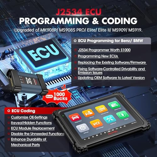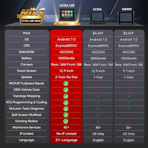 🏆【2024 Newest Autel Ultra Lite, Same as MSUltra, But Lower B.udget】MaxiCOM Ultra Lite auto diagnostics scanner has the same Hardware & Software functions as Autel Ultra: 12.9-inch 2732 * 2048 Touchscreen with Autel L.argest Storage (256G), L.ongest Battery Life (18,000mAh), F.astest Operation System with Powerful CPU, 16M+5M Dual Camera, etc. The only difference is that Autel Ultra Lite comes with MaxiFlash J2534 VCI, while MaxiSys Ultra with the 5-in-1 VCMI. If you don’t need a VCMI or your budget is limited, Autel Ultra Lite is your first choice, saving you 1,000+.