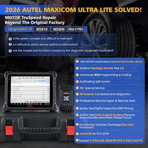 2026 Autel Scanner MaxiCOM Ultra Lite, 2-Year Update, Same as MaxiSys Ultra Up of MS919 MS909 Elite 2 Pro, Intelligent Topology 2.0, Motor TruSpeed, 40+ Reset, 3K+ Bidirectional Diagnostic Scan Tool
