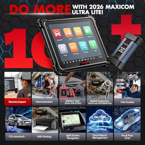 🏆【40+ Reset Service & 3000+ Active Tests & OE All System Diagnostics】As Autel T.op intelligent scan tool, MaxiCOM Ultra Lite incorporates all functions of all Autel scanners when updating 2026 new features. What’s not to like about this scanner? It truly has it all! Oil Reset, EPB Reset, SAS Calibration, BMS, Throttle Reset, ABS Bleed, Injector Coding, Power Balance, Suspension Calibration, etc., which can meet 99 % of your repair needs. Together with Full Bi-directional Control & OE All Systems Diagnosis, Autel Ultra Lite is the wisest-investment for your business, which can help you point out issues in seconds, saving you tons of time and money!