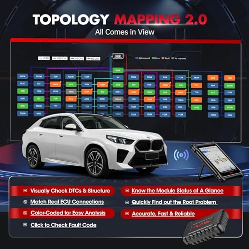 🏆【Smarter Topology Mapping 2.0, Find Roots of Problems at A Glance】2026 Topology 2.0 shows the number of systems, the scanned systems, and scan results in different colors. 📢🔥S.uperior to other brands, Autel Topology 2.0 is based on real circuits, systematically shows the real communication structure between modules, intuitively displays the current module status and directly indicates fault codes, while others’ “Topology” is just a simple graphical picture that can’t display the true structure of ECUs, without any repair value in practical.