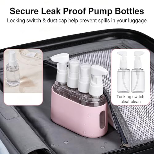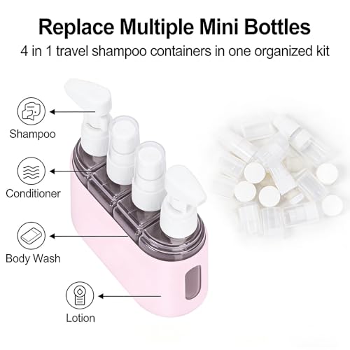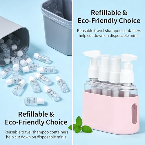 2026 New Mini Shampoo Dispenser Portable Travel Bottle Set,Leak Proof Pump Bottles Containers Travel Size Containers Airplane Accessories Kits,for Liquid, Lotion, Shower Gel (Light Green)