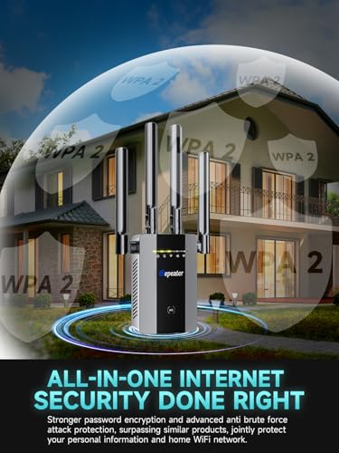UPGRADED BANK-LEVEL ENCRYPTION MEETS MILITARY SECURITY FEATURES:We have added a complete WPA/WPA2 encryption protocol and implemented real-time risk monitoring function to ensure the network security of users. This prevents unauthorised access and detects and defends potential threats from external networks in a timely manner, ensuring that your WiFi environment remains secure and reliable at all times. Additionally, its military-grade encryption create an impenetrable defense against hackers, suitable for various intdoor conditions.