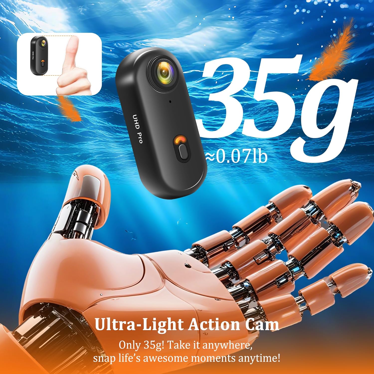 Thumb-Sized Wonder: Tired of cameras that make your backpack feel weighed down? Weighing a mere 35g—that’s lighter than your pet hamster napping on a cotton ball—this ultra-tiny action camera 4k is your ticket to effortless portability. Thumb-sized and mighty, clip it, hang it, or toss it in your pocket—adventure just got way less bulky!