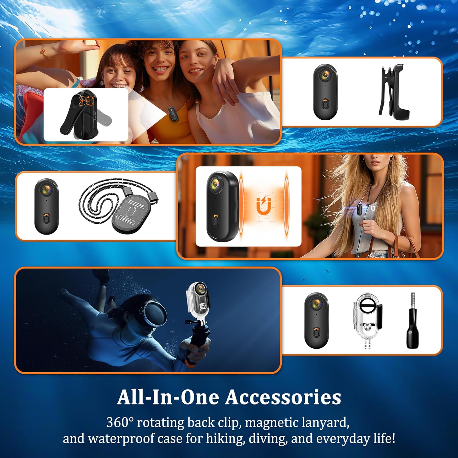 Hands-Free Hero: How Many Ways Can You Go Totally Unfussed? This body camera 4k comes with a buffet of accessories: helmet mounts for thrill-seekers, a 360° rotating back clip for city explorers, bike mounts for pedal lovers, side mounts for creative angles, and a magnetic lanyard for spontaneous snaps. Strap it to your helmet, handlebars, backpack, or even your dog—no hands required!