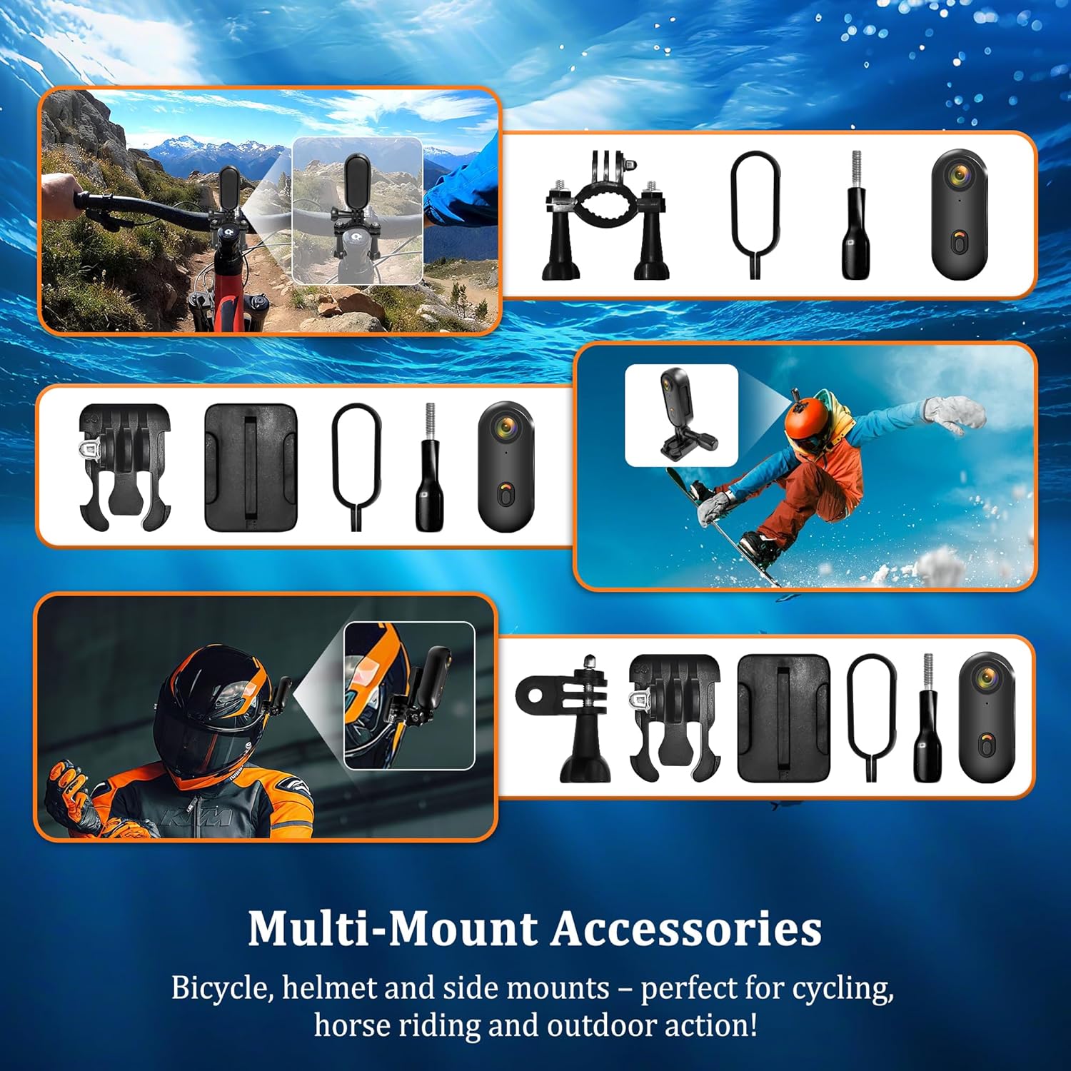 Note: 1. This 4K action camera features a shockproof design and anti-shake for daily activities—ideal for cycling, jogging, hiking, and horseback riding, ensuring smooth footage during these routine scenarios. 2. Two versions are available: the standard version includes only the camera and its original accessories (no memory card included), while the other version comes with an extra 64GB memory card. Please note the distinction between the two versions. 3. Temporarily disable VPN for 1-2min WiFi pairing; re-enable afterward. Technical compatibility only—no data collection.