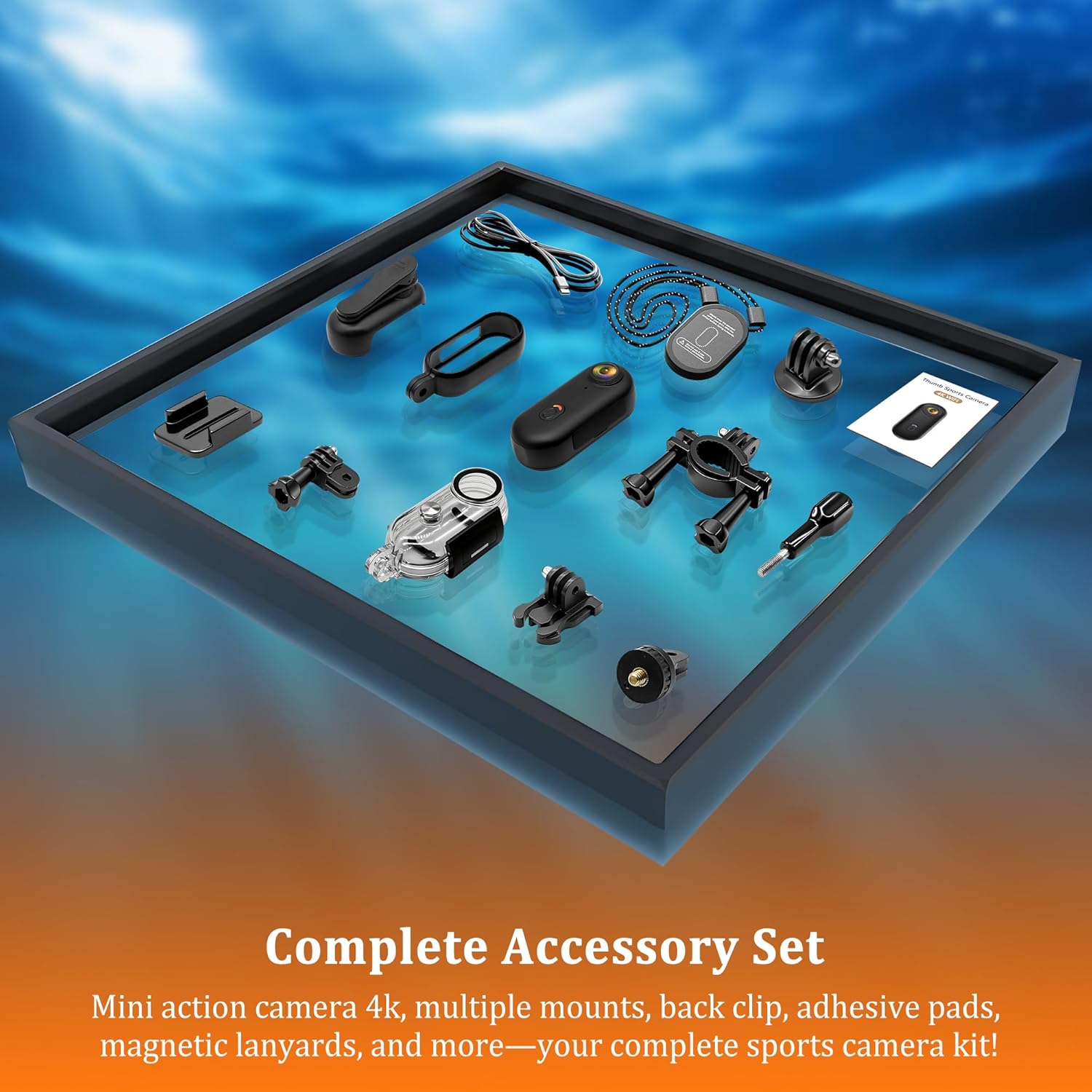 All-in-One Adventure Kit: What Else Could You Possibly Need? Unbox your next big adventure! Inside, you’ll find: the sports camera itself, a waterproof case, magnetic lanyard, 360° rotating back clip, helmet mount, bike mount, side mount, cam frame, mounting adapter, rectangular rubber pads, manual and type-C cable. They’re here to make sure your action body cam stays put—on your jacket, backpack, bike, helmet, or even your four-legged hiking buddy. Ready, set, explore!