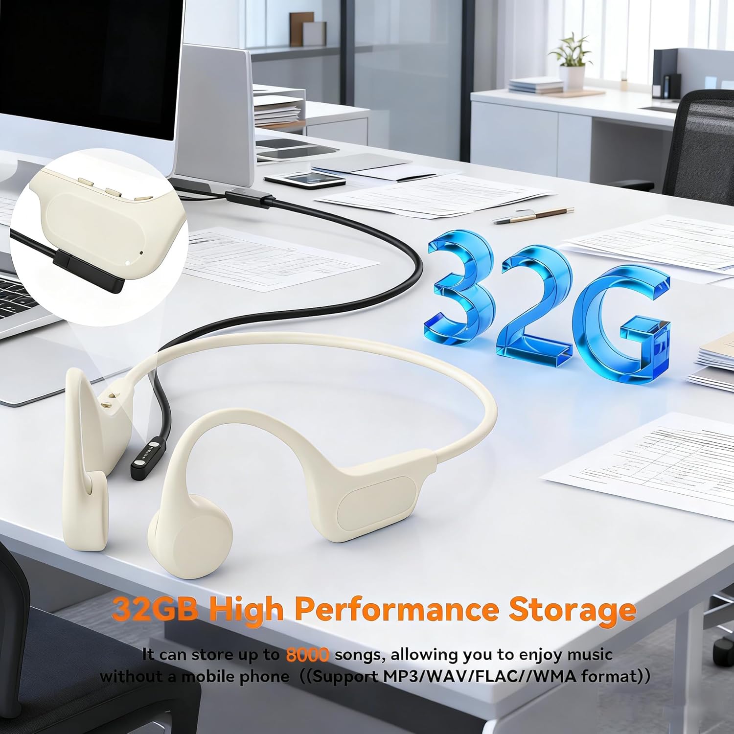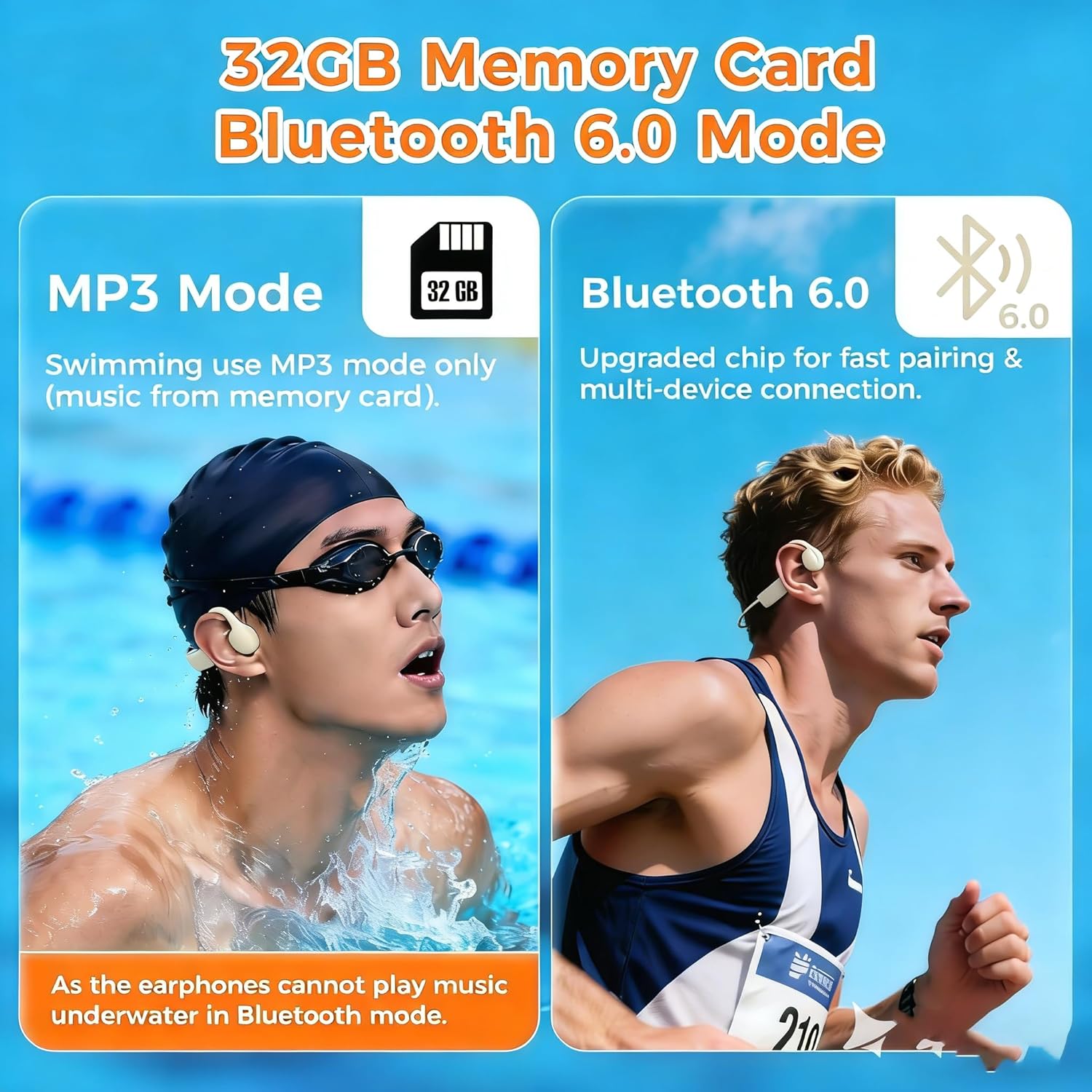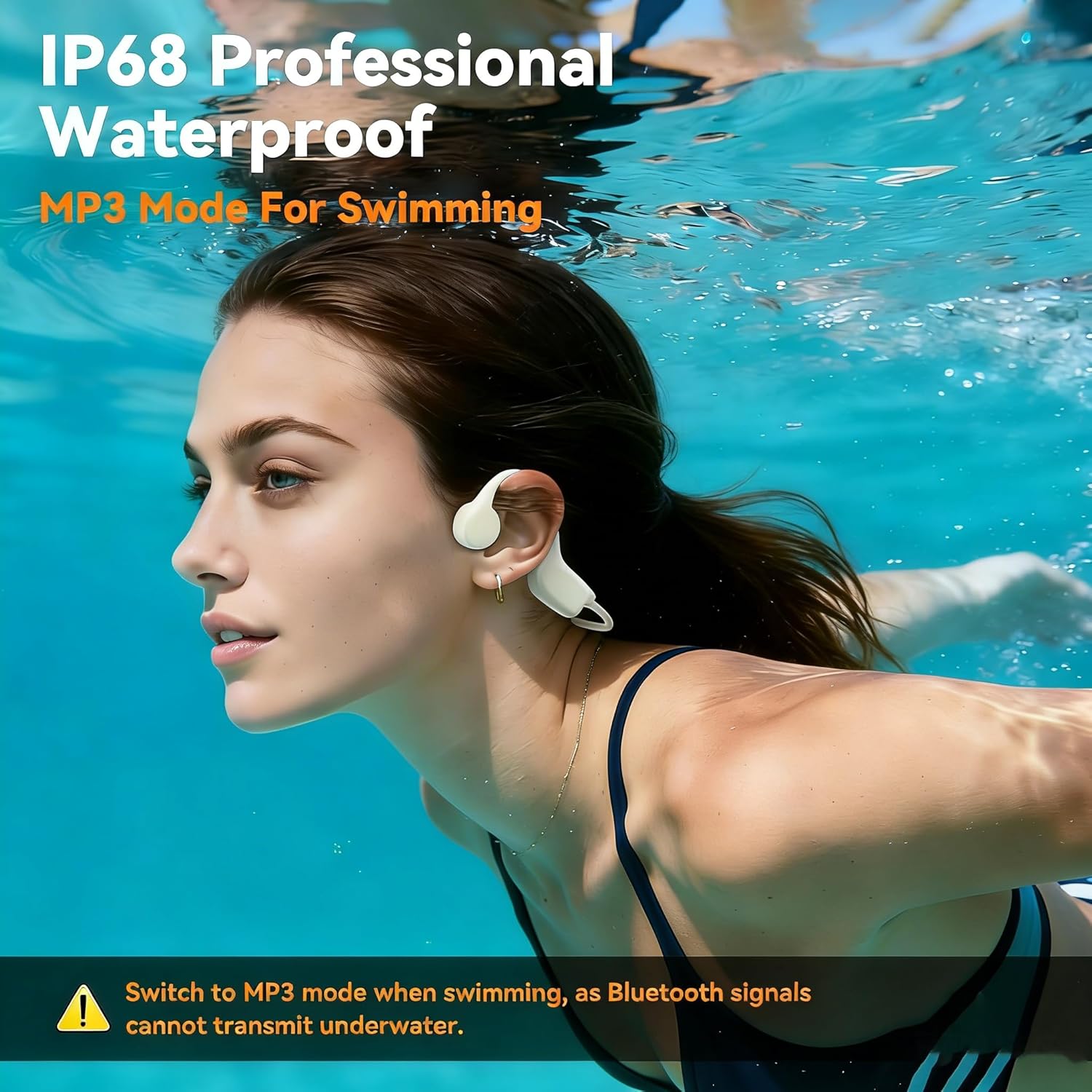 2026 Upgrade Bone Conduction Headphones-SwimBeats, IP68 Waterproof Swimming Headphones| 32GB Storage| BT 6.0| 28g Lightweight| 8H Battery, Open-Ear Headphones for Swimming, Running, Cycling(Beige)