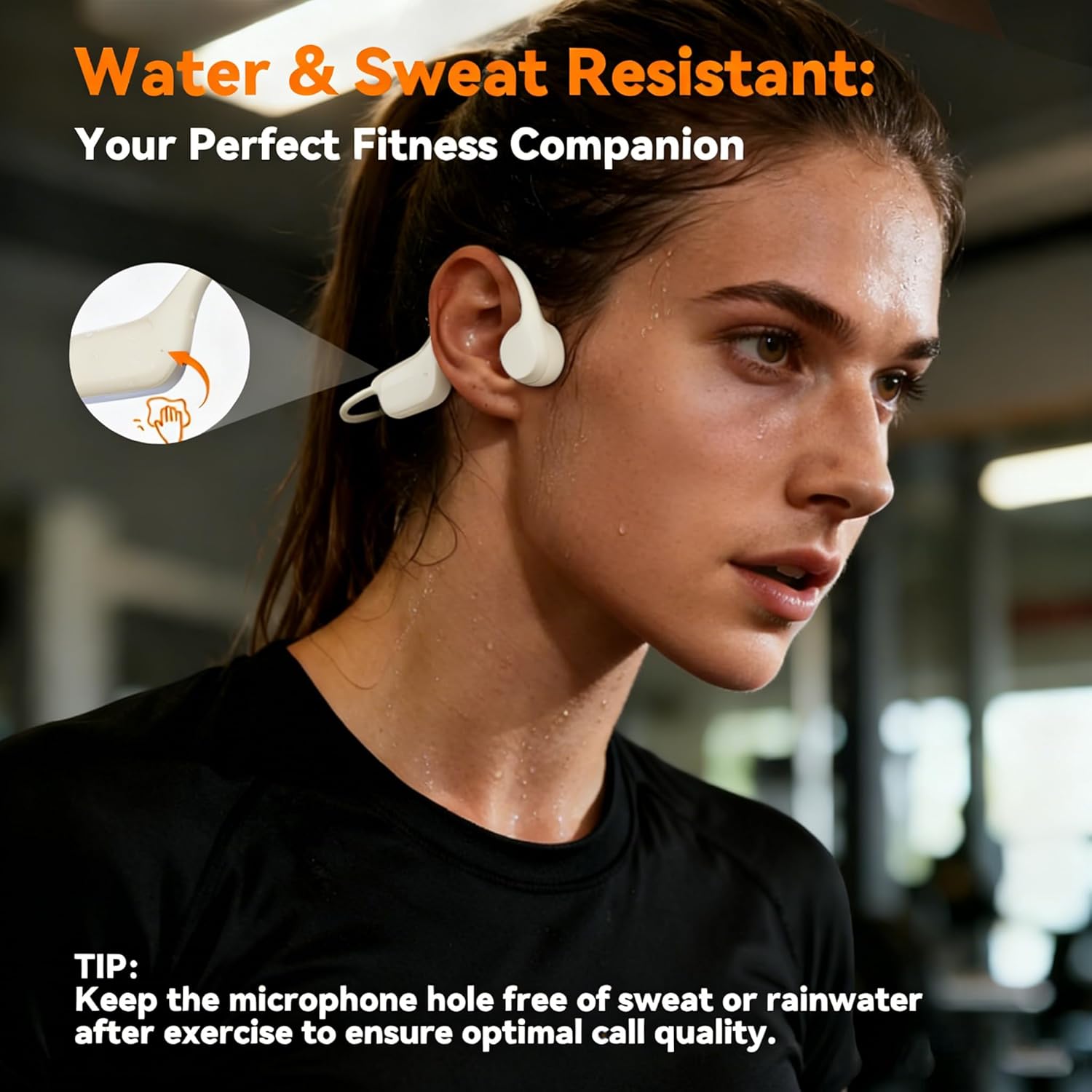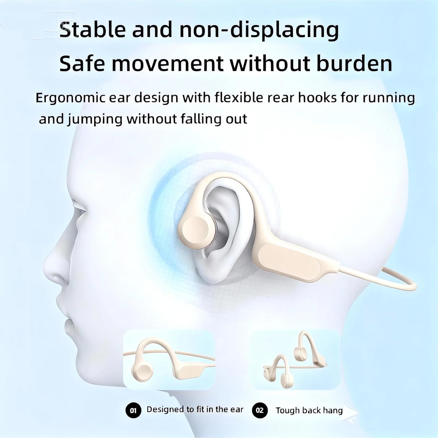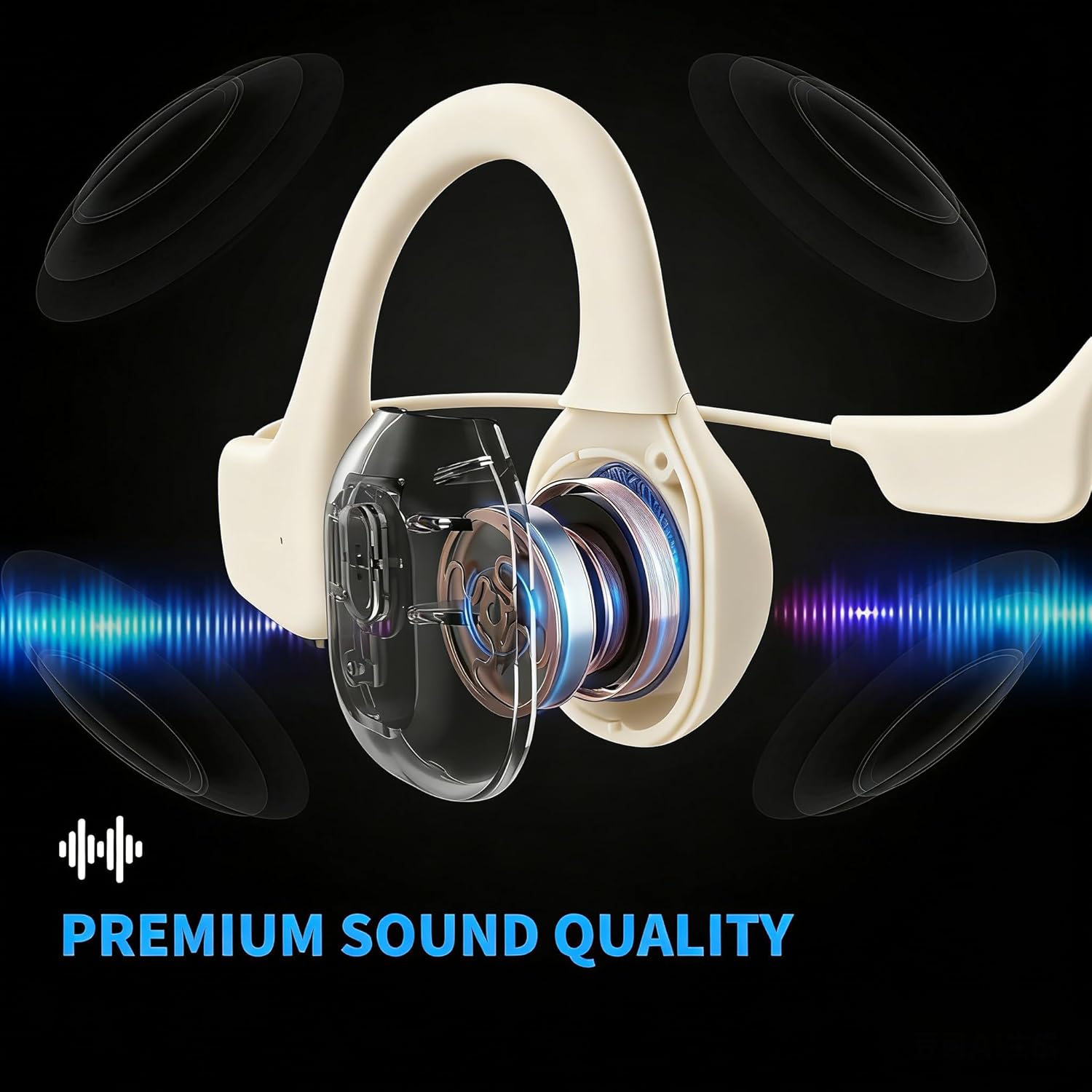 2026 Upgrade Bone Conduction Headphones-SwimBeats, IP68 Waterproof Swimming Headphones| 32GB Storage| BT 6.0| 28g Lightweight| 8H Battery, Open-Ear Headphones for Swimming, Running, Cycling(Beige)
