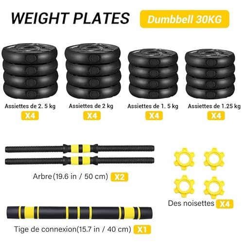20KG 30kgDumbbell Weight Set Adjustable Fitness Dumbbell Set Gym Muscle Strength Exercise Training Tool Weightlifting Equipment (Black 30kg)