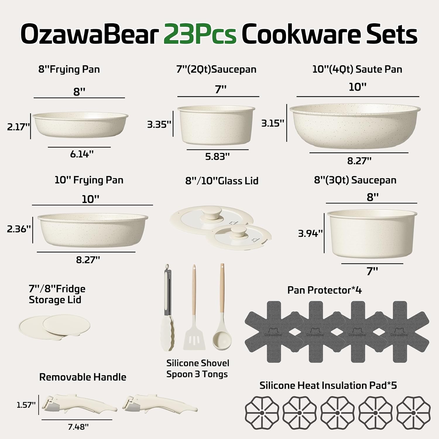 23 Pcs Pots and Pans Set Non Stick, Ceramic Cookware Set Non Toxic with Detachable Handles, Healthy Induction Cookware Oven Safe RV Kitchen Set, PFAS PFOA & PTFE Free, Cream White