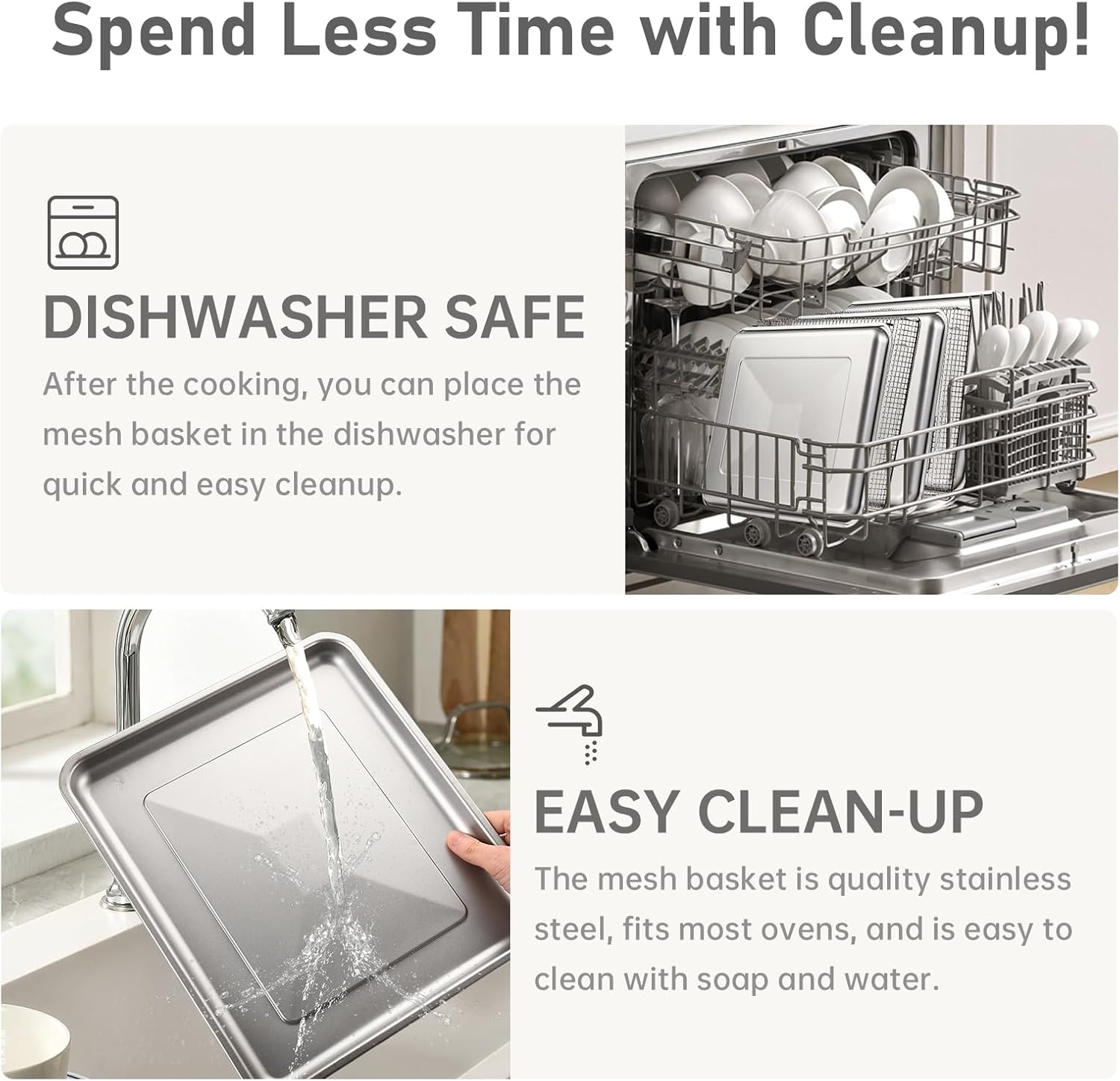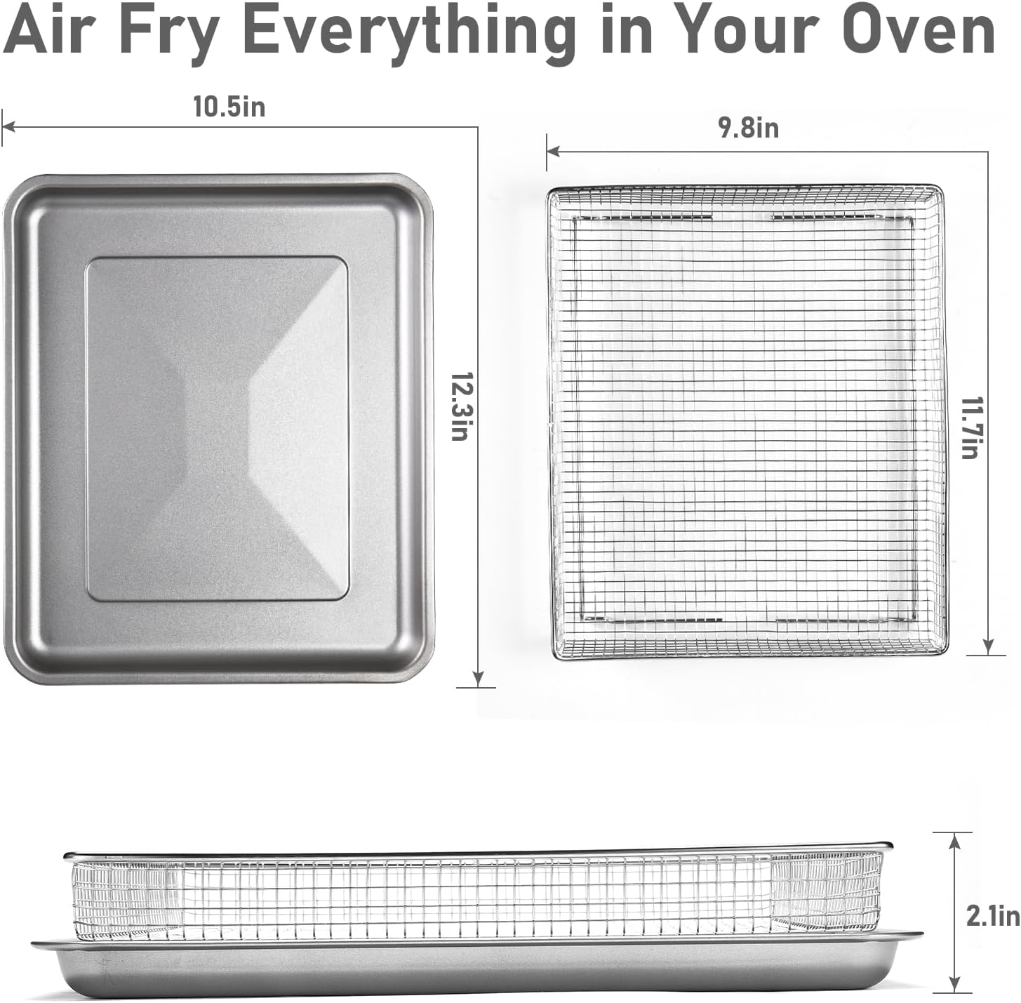 【2 Pack Air Fryer Basket, the best partner for Cuisinart ovens】Stainless steel air fryer basket measuring 12.3×11 Inches, Design for Cuisinart TOA-60 TOA-65 TOA-70 TOA-75 air fryer toaster ovens. 2 Pack means you can cook more food at once, saving you time and energy. Works well with oven air fryer function, whether you’re feeding a family or entertaining guests. They’re perfect for dry brining meat when you are not cooking with one of them. This oven crisper tray and pan set can handle it all.