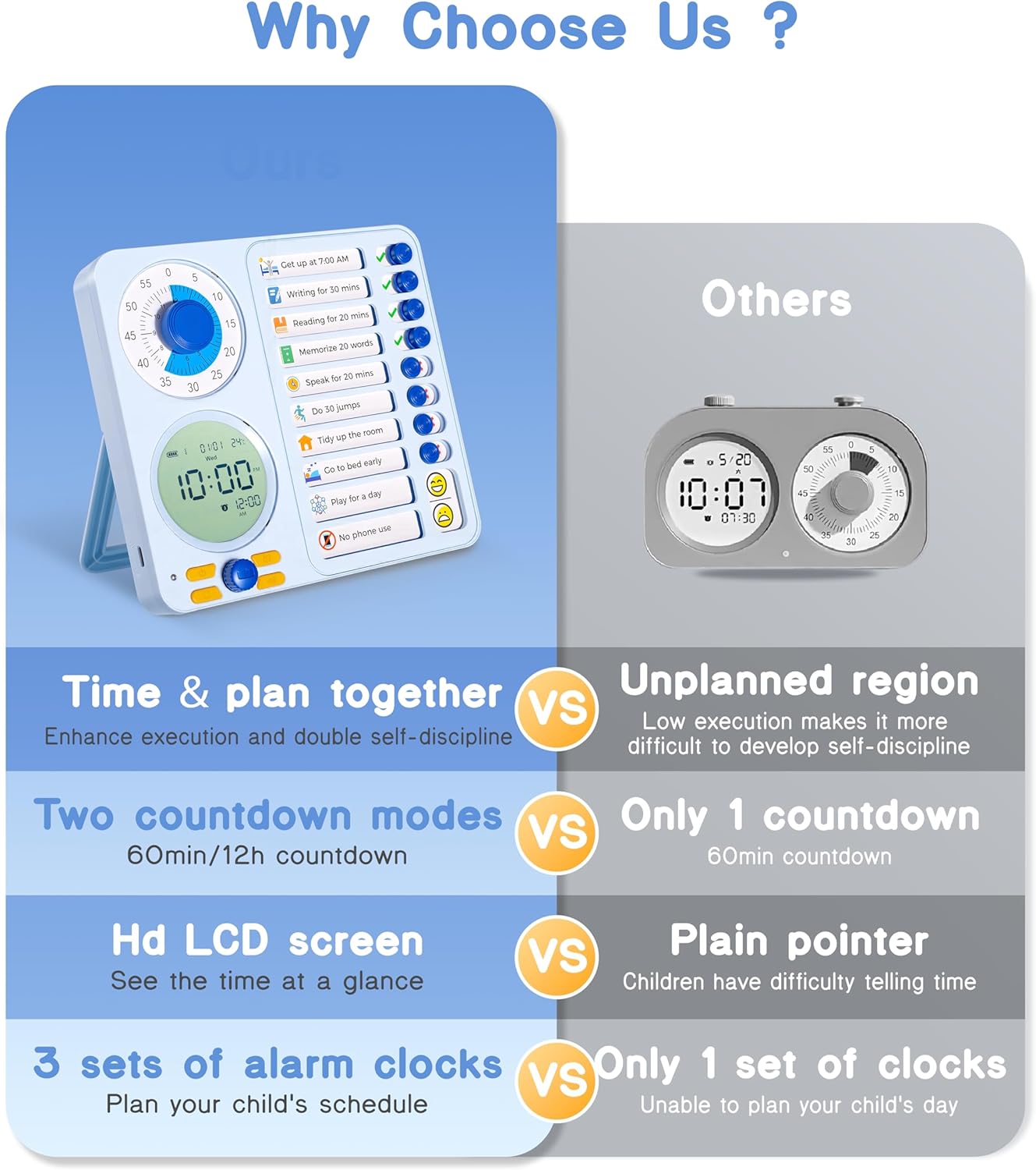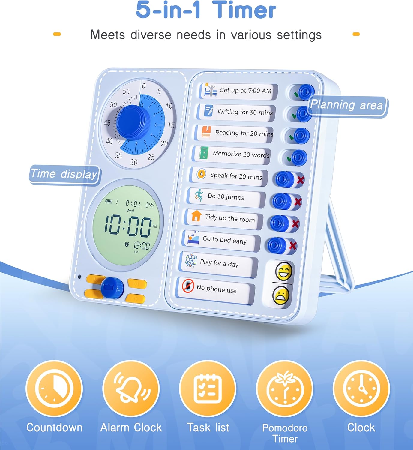 5-in-1 Visual Timer for Kids & Adults : This time management tool combines visual timer, digital clock, and chore chart, helping both kids and adults stay on schedule