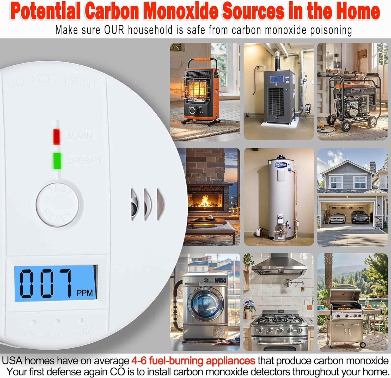 High Accuracy & Reliability: Features an advanced electrochemical carbon monoxide sensor that accurately detects real-time CO lcarbon monoxide levels.