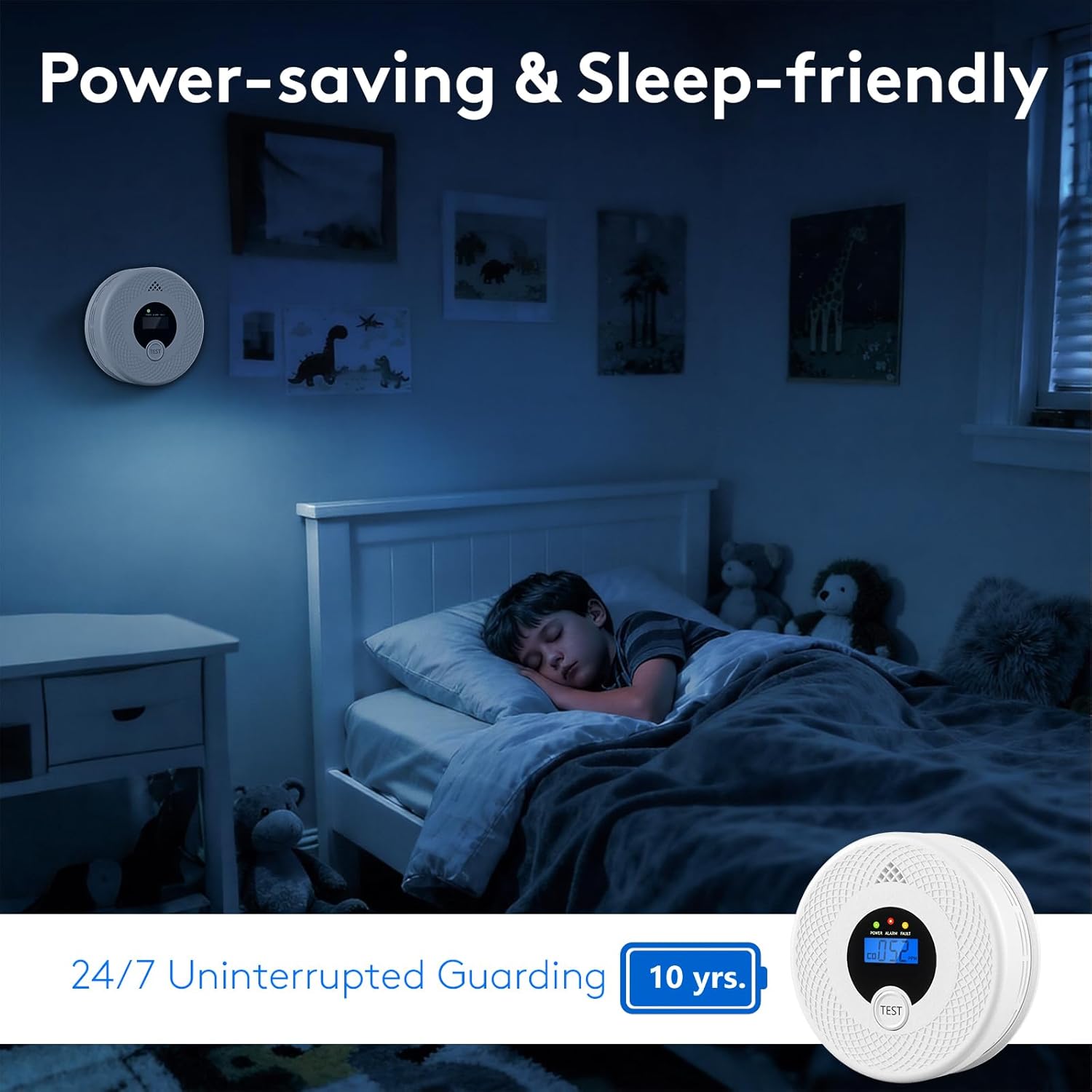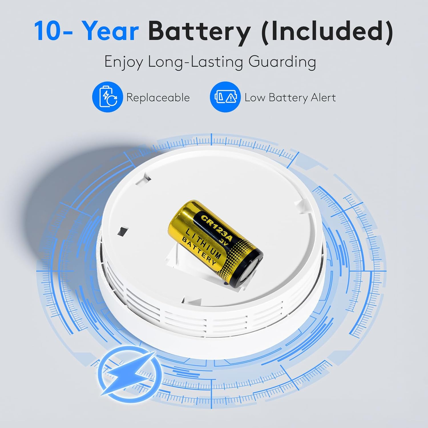 [ Long-lasting battery ] The smoke alarm and carbon monoxide detector is equipped with a 10-year battery, ensuring prolonged battery life without the need for frequent replacements