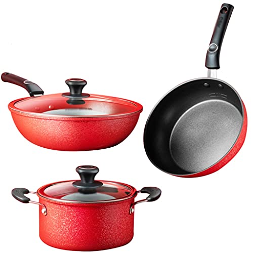 3 Piece Cookware Set Household Pot Wok Frying Soup Nonstick Kitchen Combination
