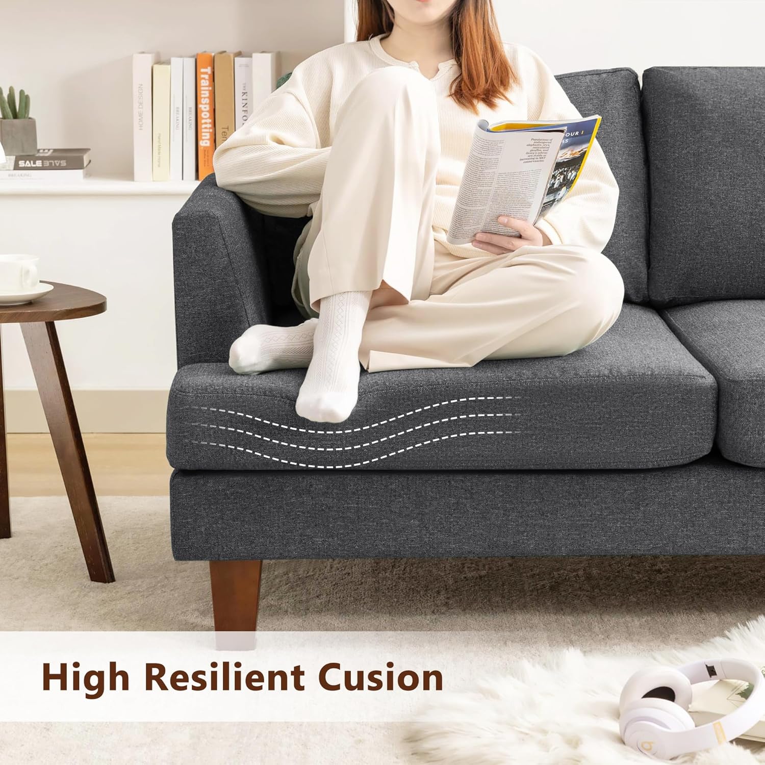 【Modern Design】Experience the essence of modern style with our modern sofa.Straight edges and sectional sets define its contemporary sofa style.The seat cushions seamlessly align with the armrests, creating a simple yet modern style for living room space.