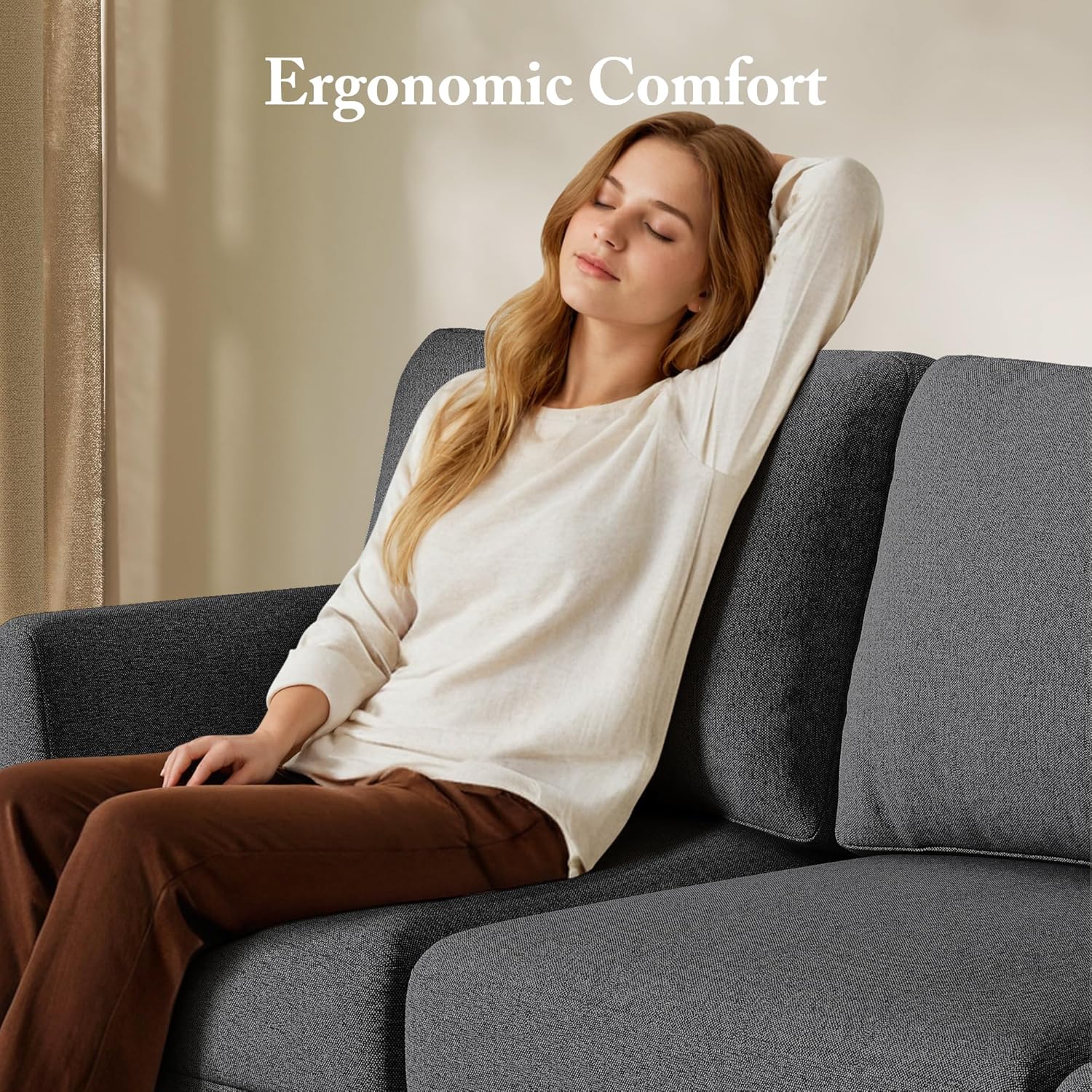【Deep & Comfy Couch】Experience leisure in style with our 3 seater sofa – a spacious and cozy spaces for your relaxation needs. Featuring a 28.75 inch deep seat, generous armrests, and soft cushion sets, this comfy couch is designed to effortlessly accommodate your living room or bedroom.