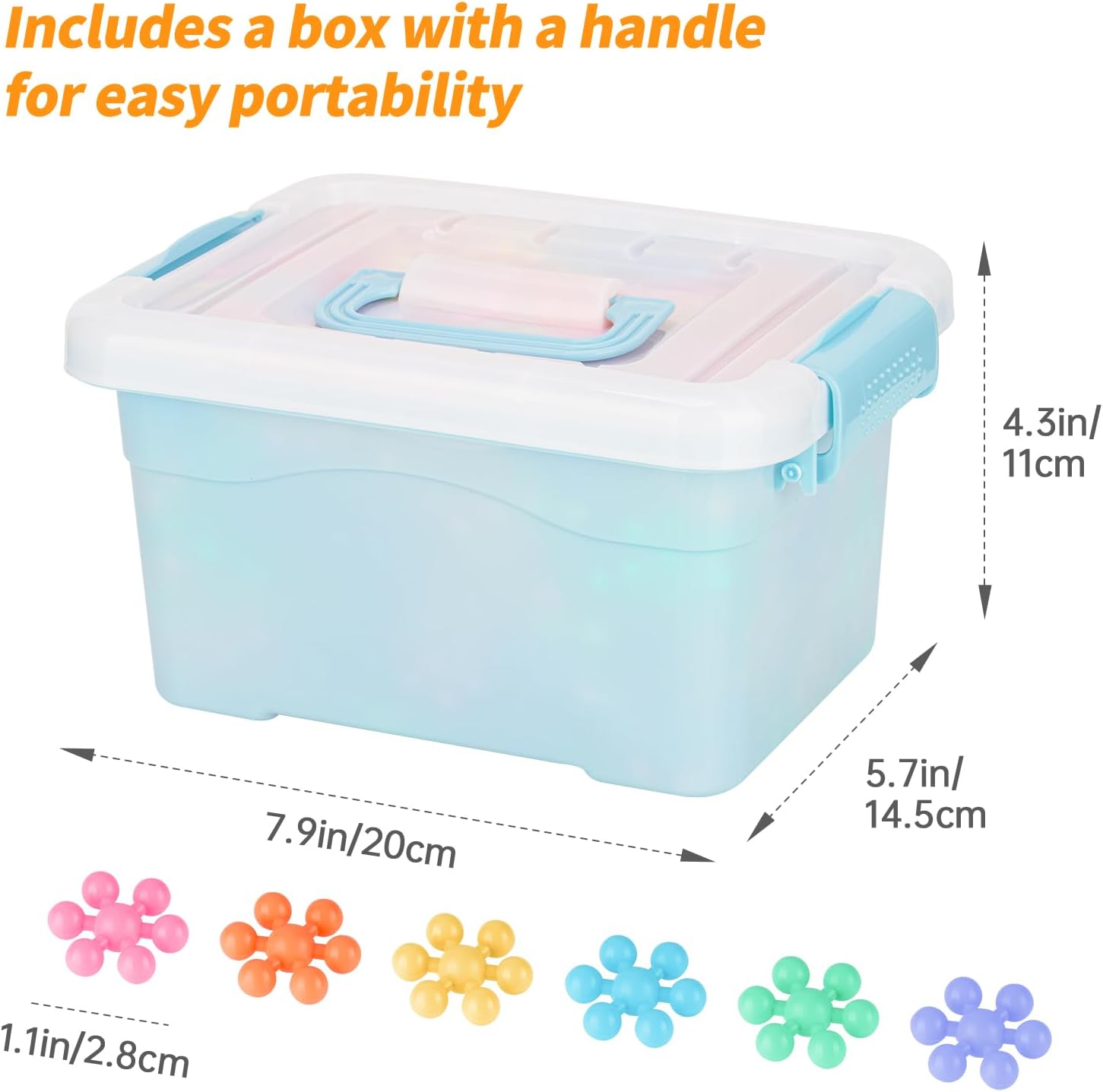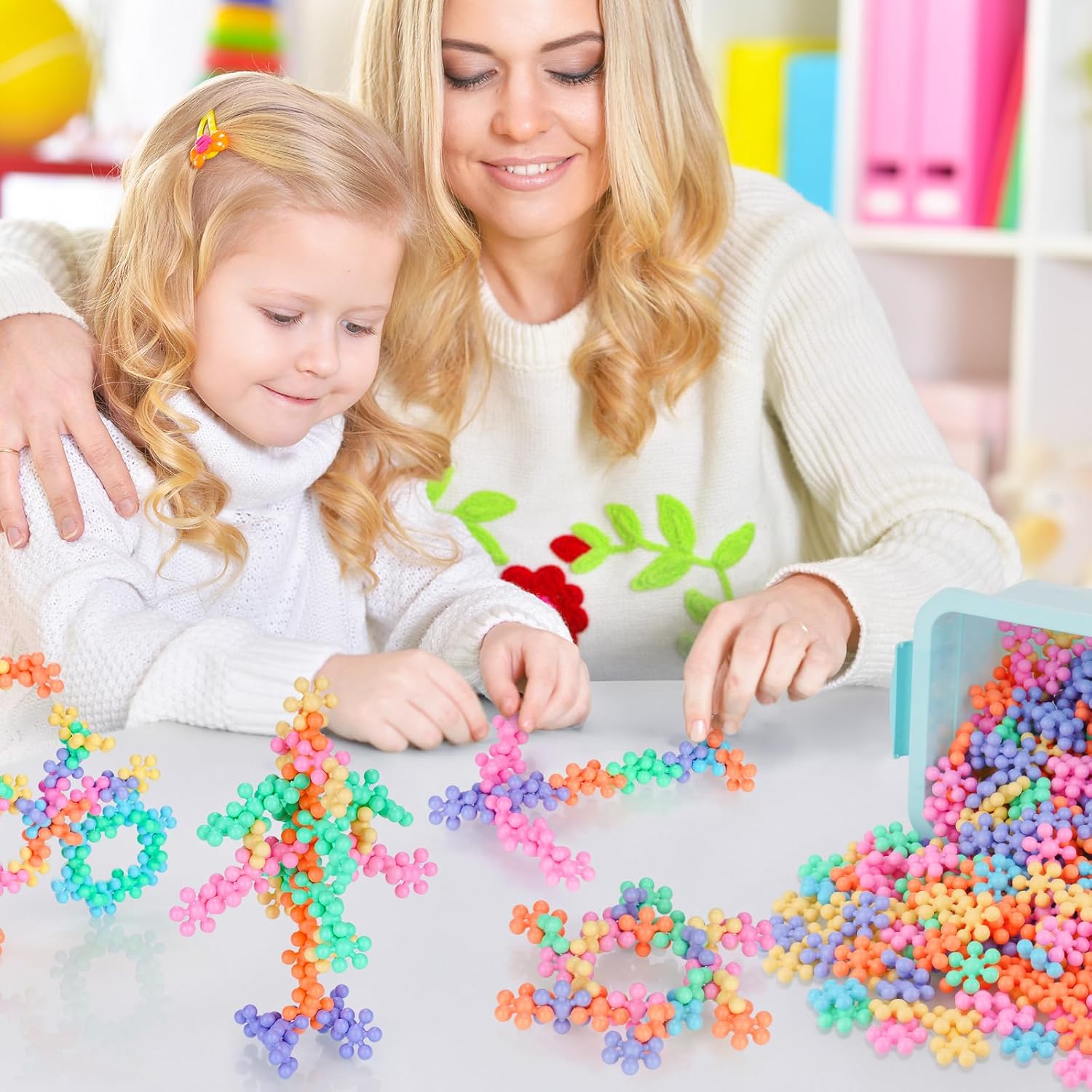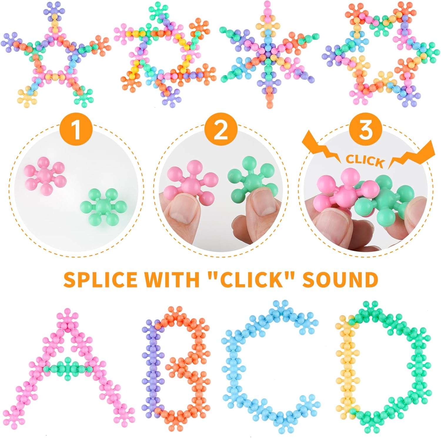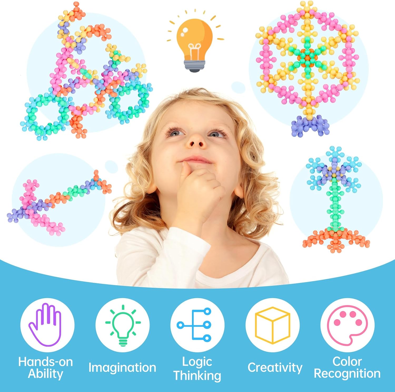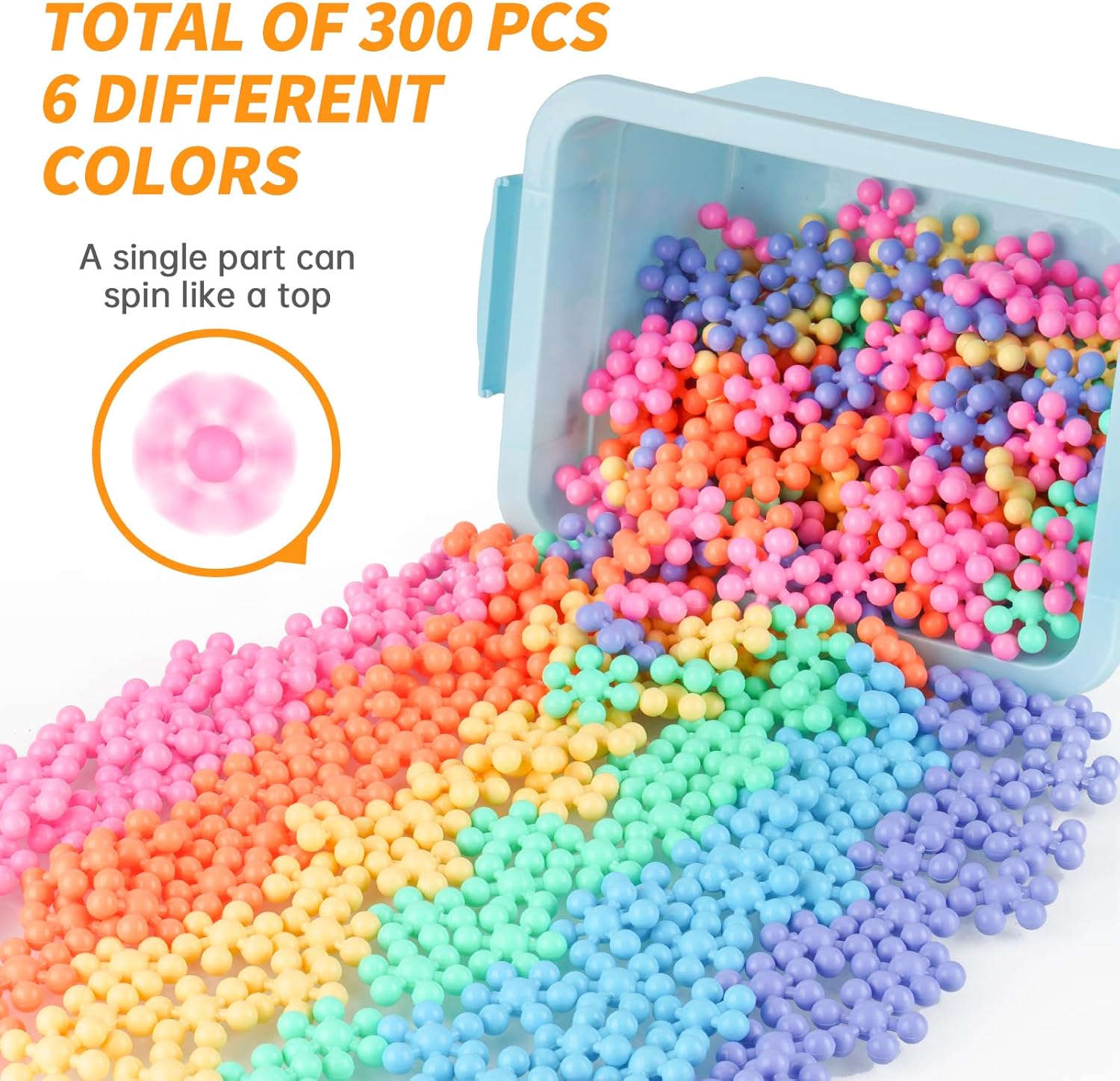 300PCS Interlocking Snowflake Building Block Toy for Kids Ages 3+, Multi-Color Solid Plastic Early Learning Creativity Educational STEM Toy with Carrying Case Safe Material (Macaron Colors)