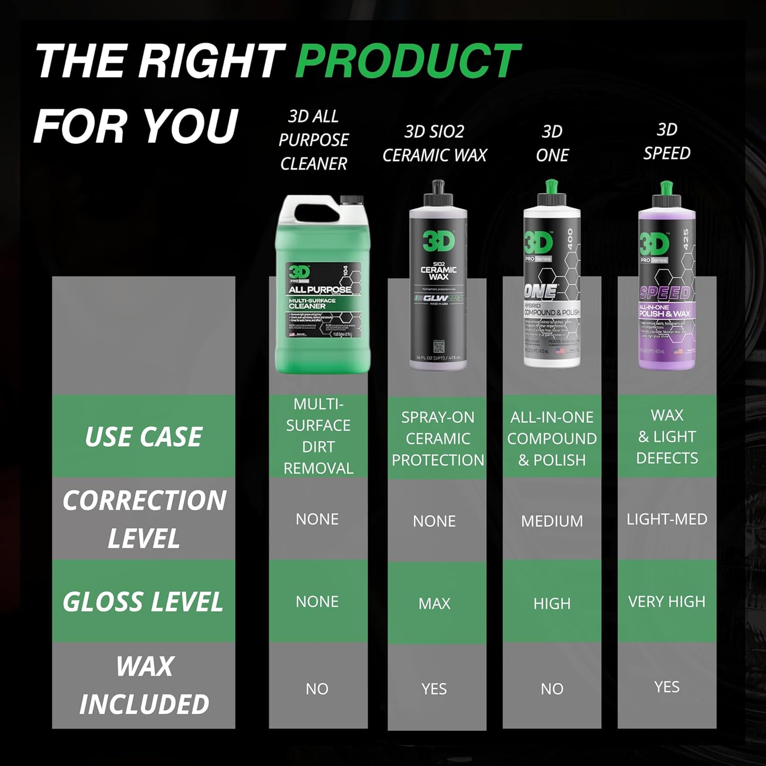 We take pride in knowing you can trust 3D Car Care products with your car, motorcycle, boat, RV, or even at home or in the office.