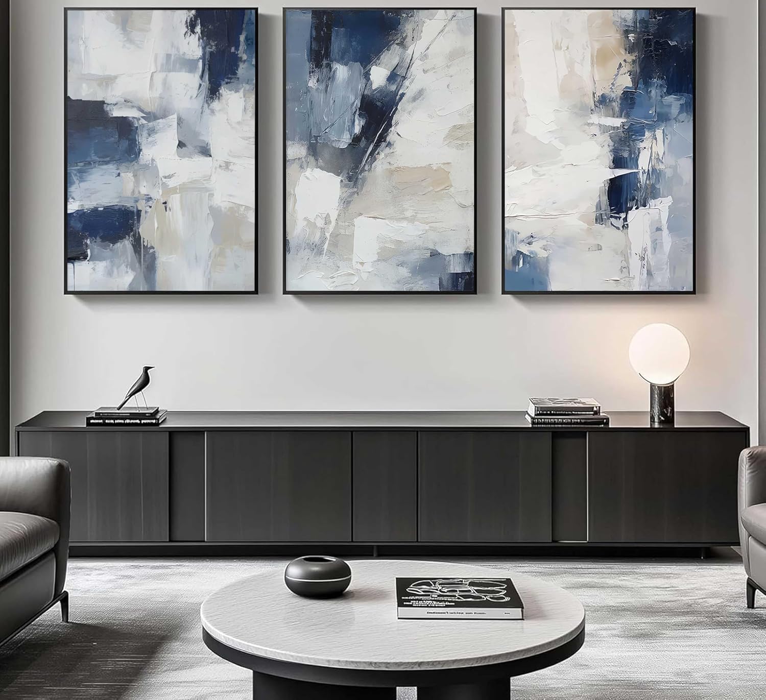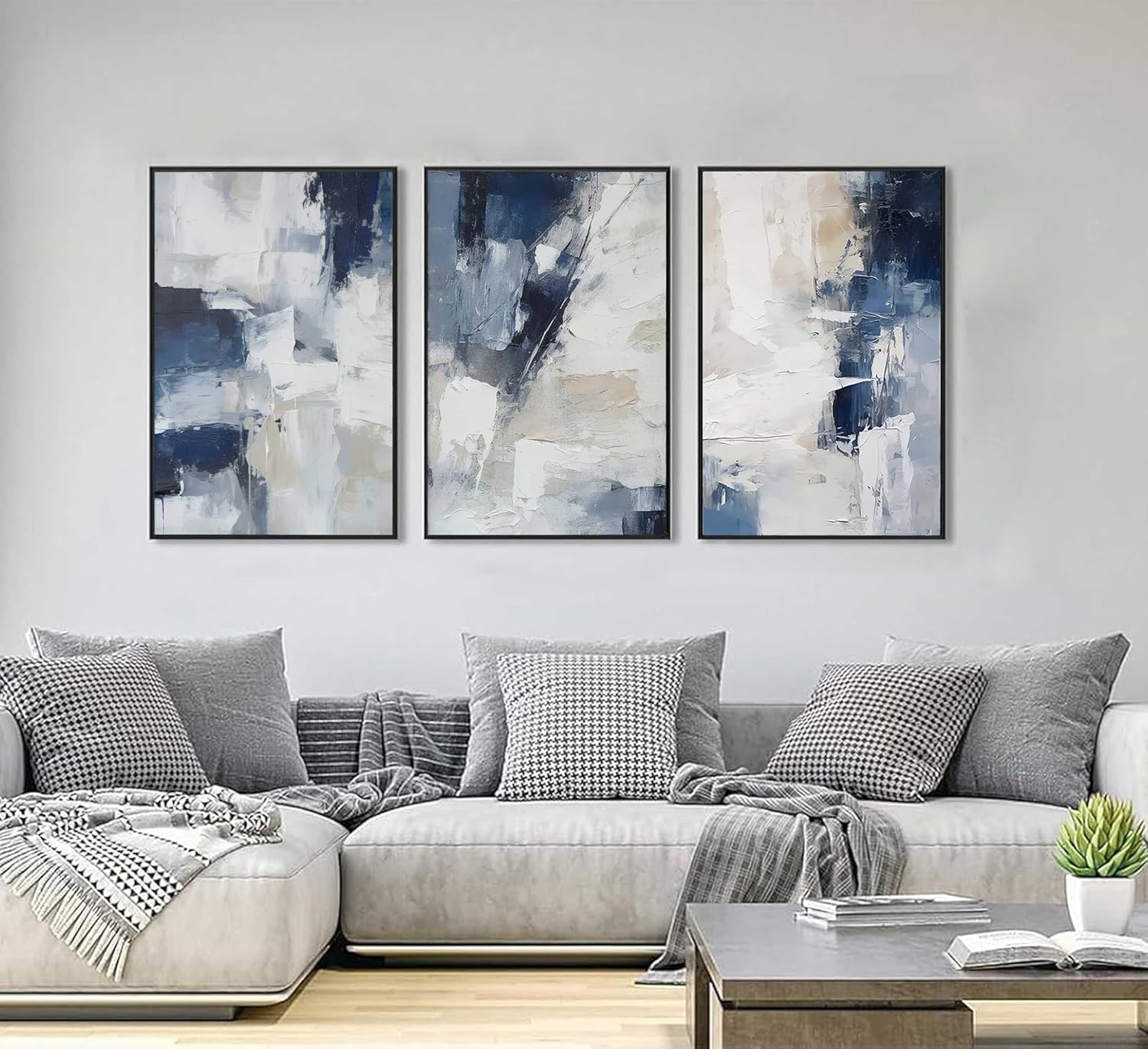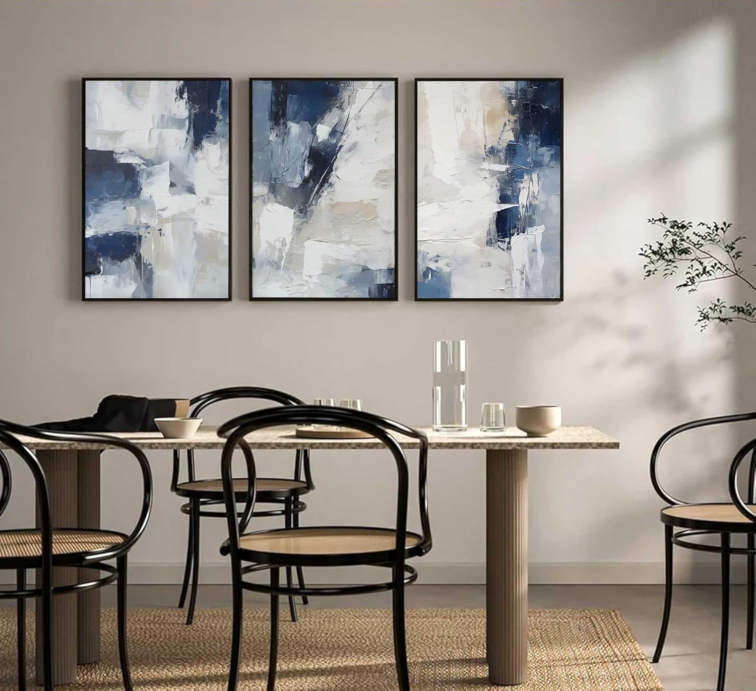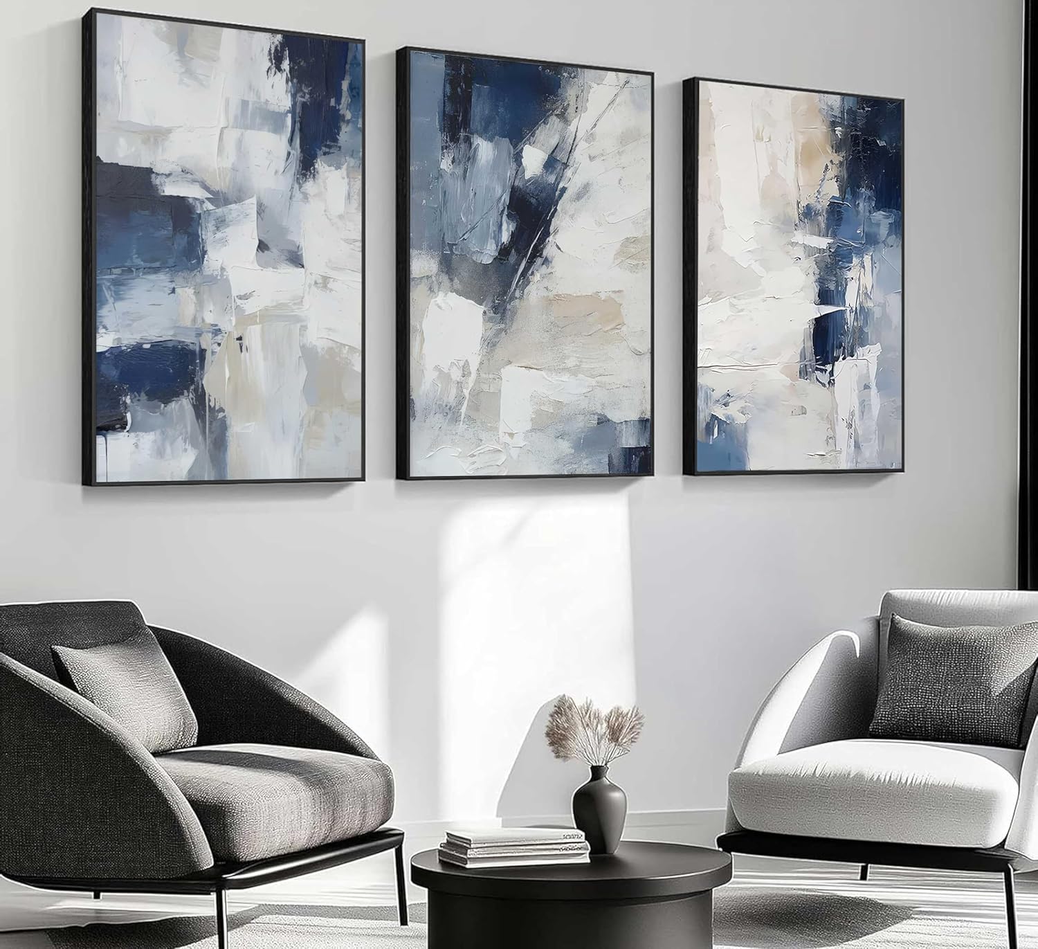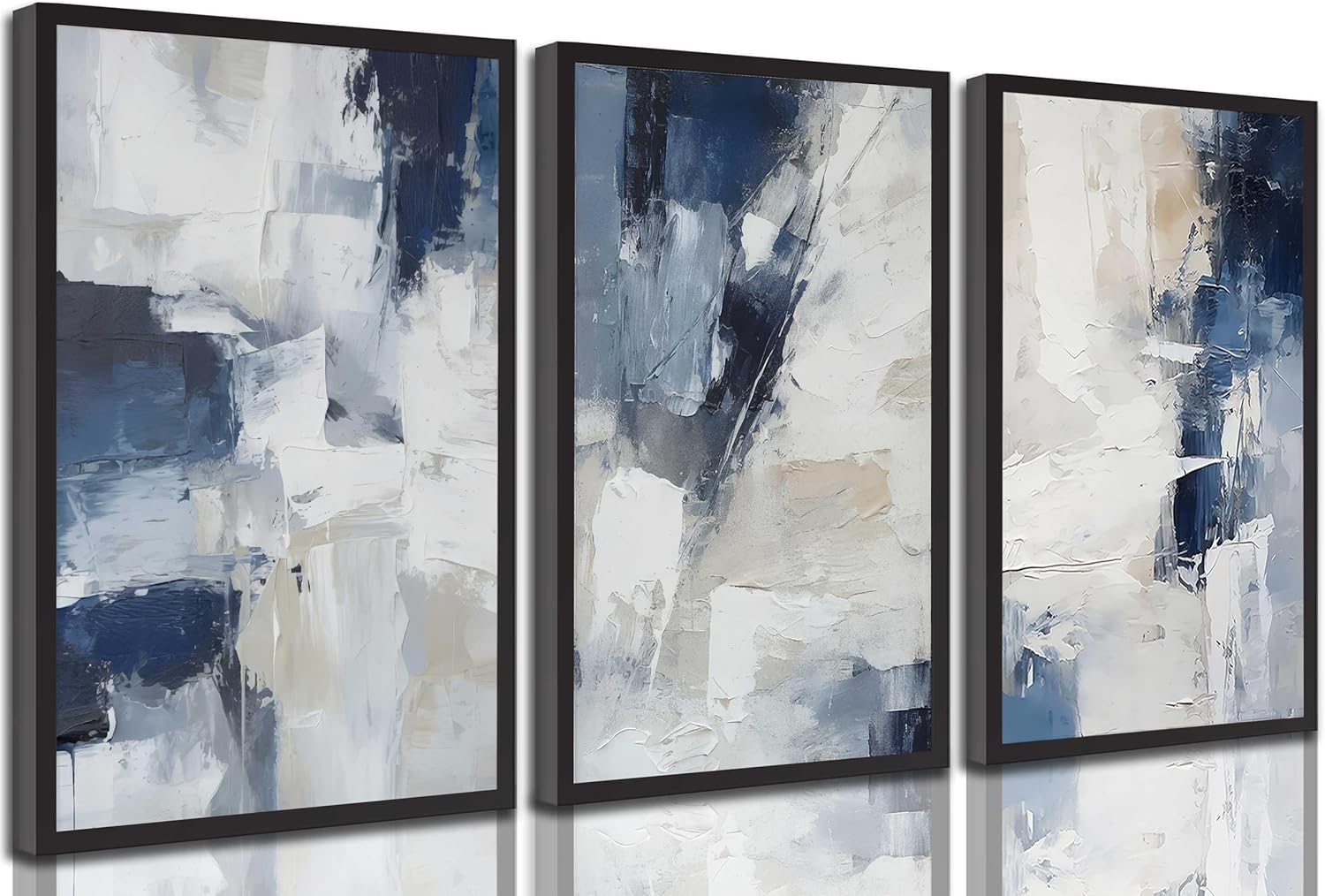 Specification: 3pcs Navy Blue Abstract Canvas Wall Art Modern Minimalist Neutral Blue White Painting Picture Wall Decor Posters Prints Artworks for Living Room Bedroom Office Home Decoration Unframed