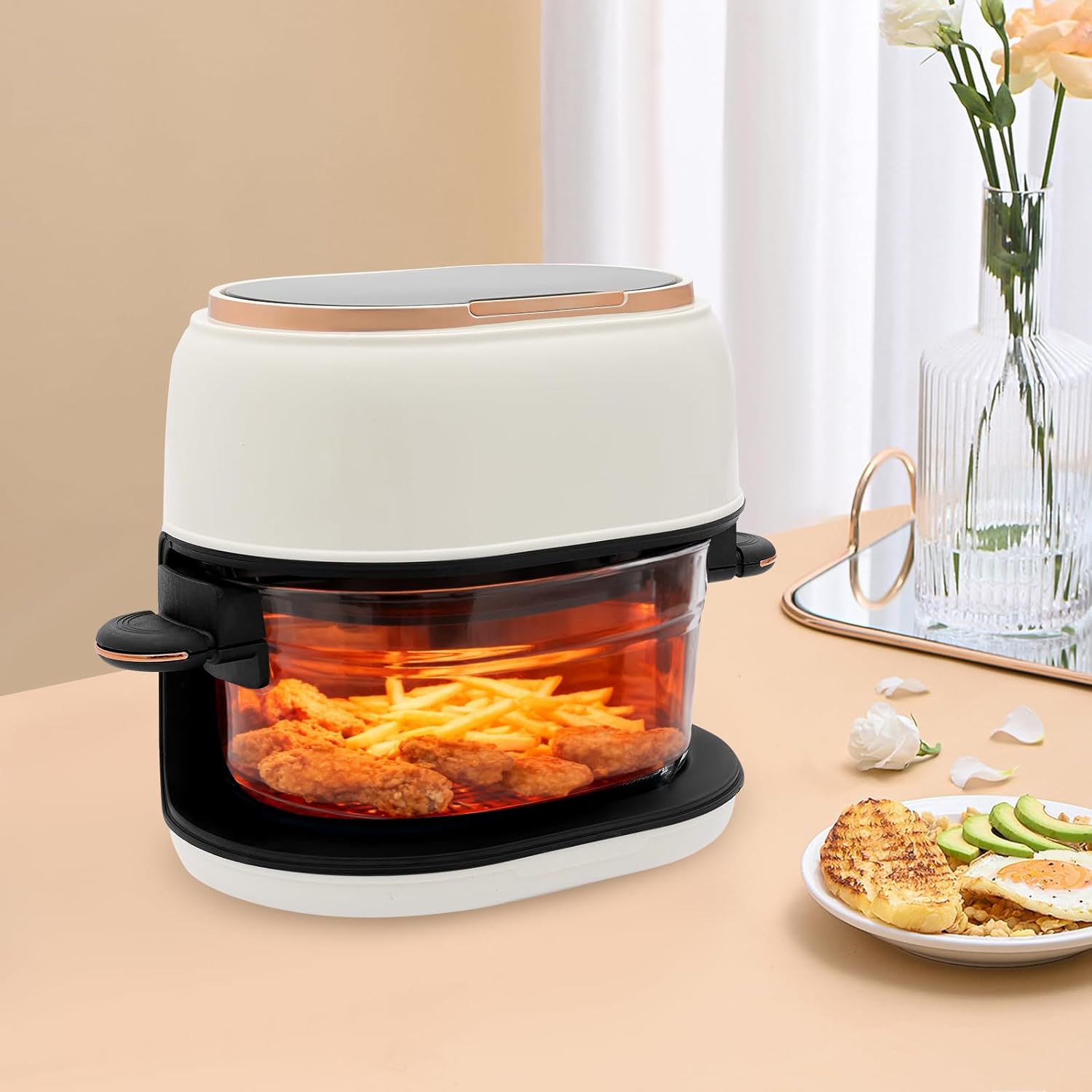 4.2QT Air Fryer with Glass Basket & Touchscreen, 900W Electric Hot Air Fryer Multifunctional, See-Through Window for Healthy Frying, Baking, Family Meals, Chicken Fries Vegetables, 110V, White