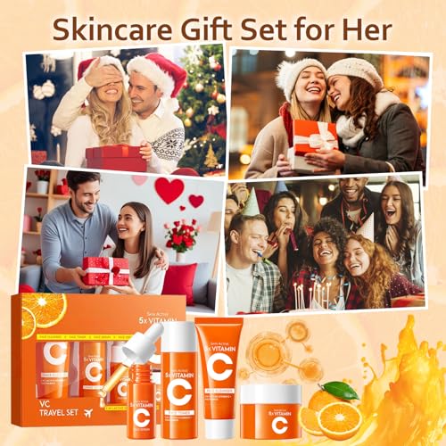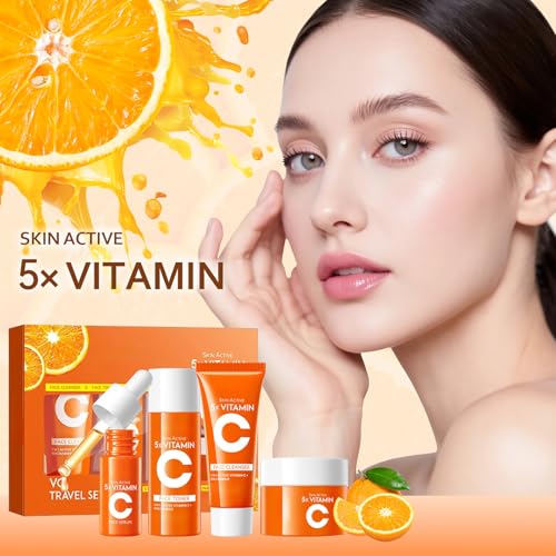 4-in-1 Vitamin C Skincare Kit for Women, Moisturizing & Hydrating Skincare Travel Kit, Face Care Gift Set with Facial Cleanser, Toner, Serum and Face Cream