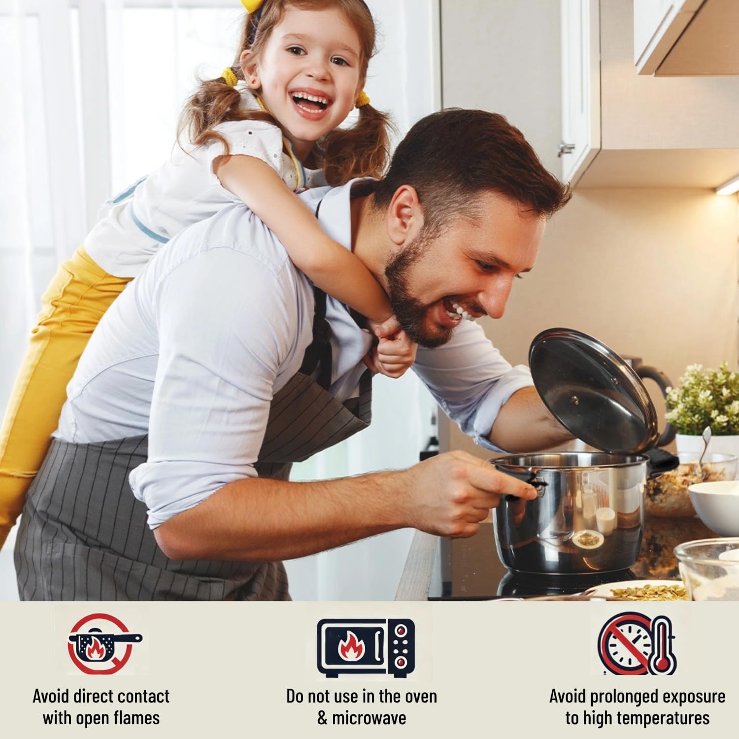 Heat-Resistant Silicone: Our pot handle holders are made from sturdy, heat-resistant silicone that can withstand temperatures up to 230°C. However, please avoid direct contact with open flames or prolonged exposure to temperatures above 230°C to prevent damage. These handles are essential in the kitchen, protecting your hands from burns when picking up hot cookware.