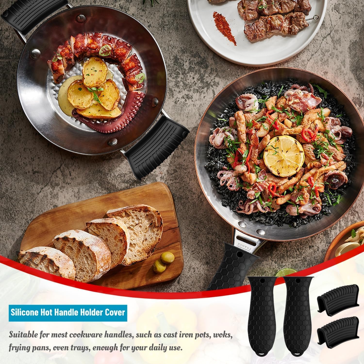 Anti-Slip Design: The pot handle cover is designed to fit snugly on your cast iron skillet. The anti-slip texture and silicone ribs inside the handle ensure a secure grip when moving hot cookware, effectively preventing slips