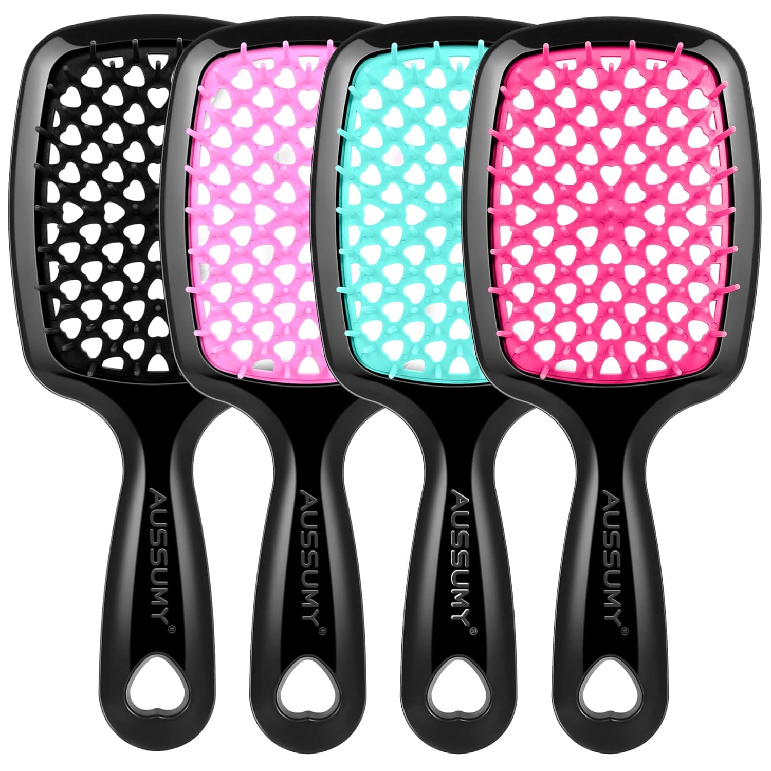 4 Pack Vented Detangling Hair Brush – Detangler Hairbrush with Soft Bristles for Effortless Tangle Free – Ideal for Wet Dry or Curly Damaged Hair for Women Men Kids